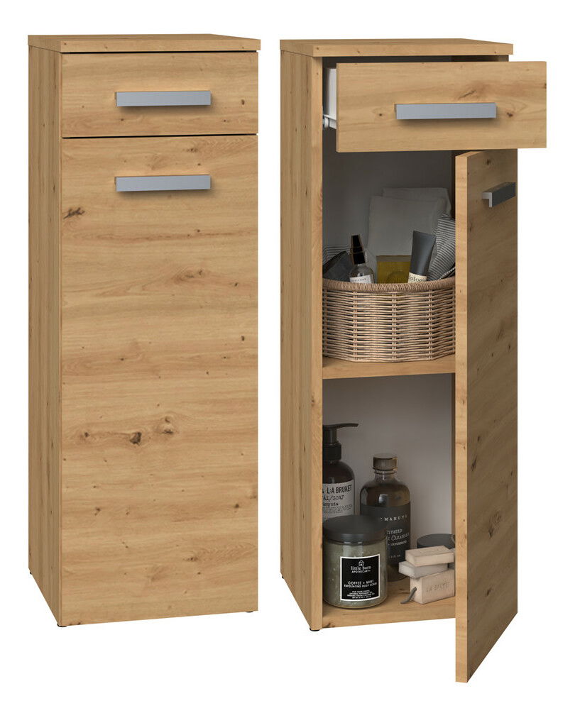 ZobrazitKoupelnová skříňka Neltossa 17 v elegantní barvě dub artisan je ideálním řešením pro každou moderní koupelnu, kde je zapotřebí efektivně uspořádat prostor. S praktickým šuplíkem a dveřmi, které lze otevírat z obou stran, nabízí maximální komfort při používání. Její univerzální design spojuje jednoduchost s elegancí, čímž se hodí do různých interiérových stylů. Skříňka je vyrobena z kvalitní laminované dřevotřísky, což zaručuje její odolnost a dlouhou životnost. S Neltossa 17 si můžete být jisti, že vaše koupelna bude vždy uklizená a stylová.