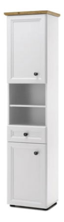 Koupelnová skříňka Taryne (bílá) je ideálním řešením pro Vaši koupelnu. Skříňka má výšku 191 cm a hloubku 32 cm a je vyrobena z DTD laminovaného materiálu. Bílá barva v kombinaci s dubovým artisanem skvěle doplní interiér Vaší koupelny. Skříňka nabízí dostatek úložného prostoru díky dvěma jednodveřovým skříňkám s policemi a otevřenému prostoru, který je také rozdělen poličkou. Navíc, skříňka disponuje také zásuvkou, která Vám umožní ukládat drobné předměty. Koupelnová skříňka Taryne (bílá) je dodávána v demontu a její rozměry jsou 41x32x191 cm. Nechte se okouzlit touto kvalitní a praktickou skříňkou pro vaši koupelnu.
