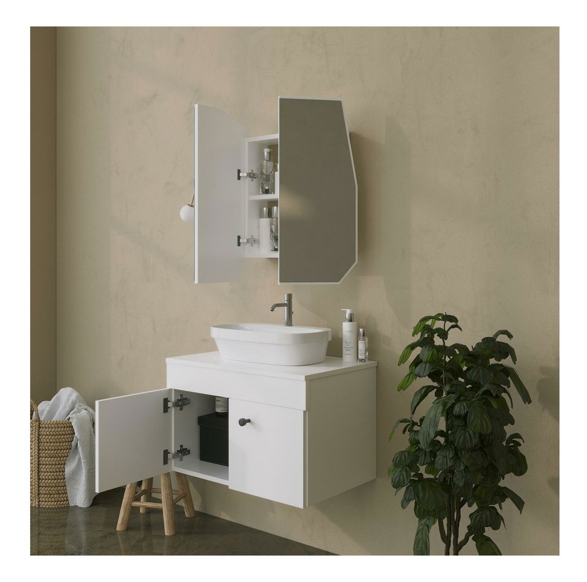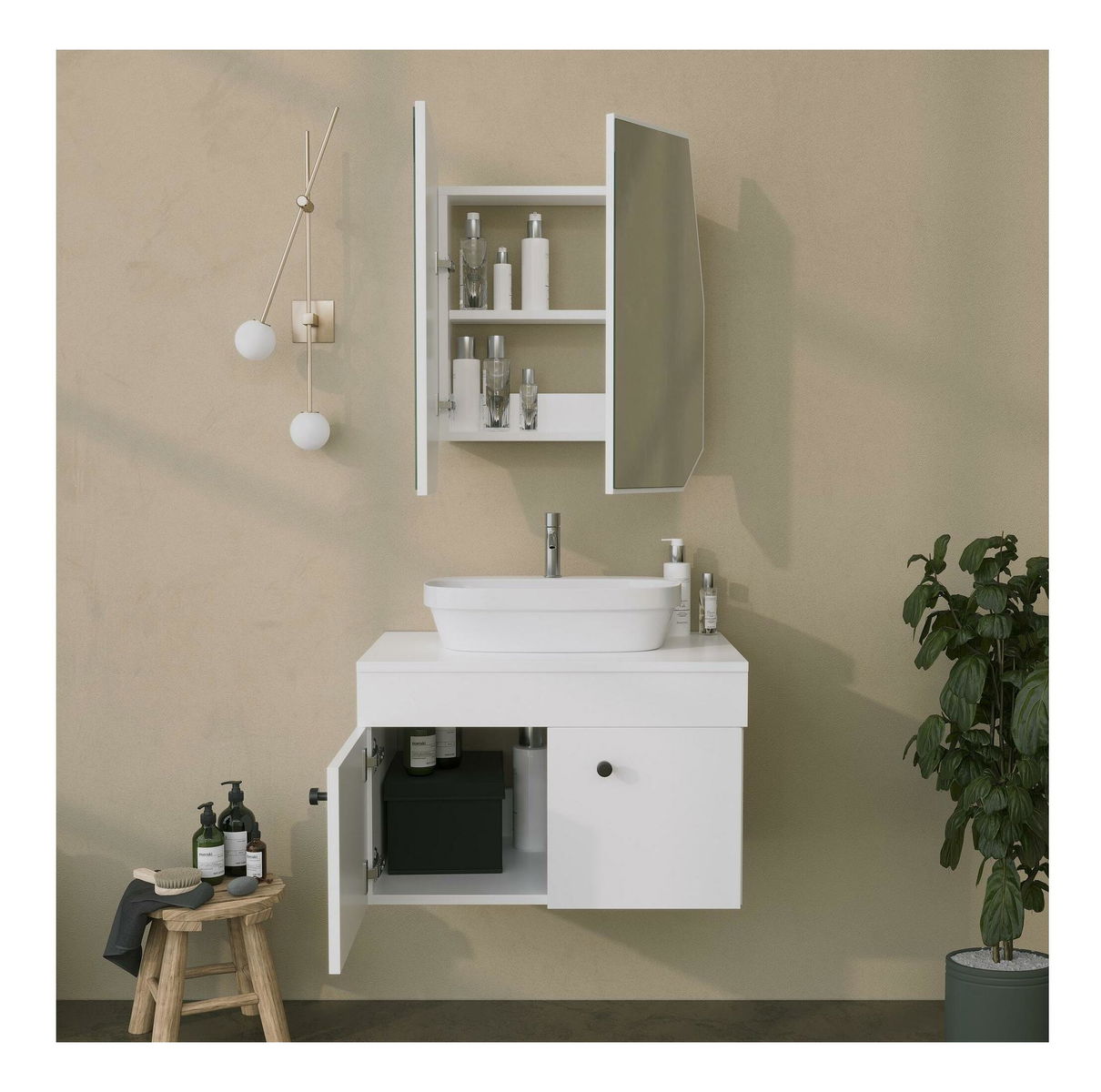 Koupelnová skříňka Tunupi 1 (bílá) (se zrcadlem)