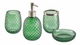 Dodejte své koupelně osobitý nádech pomocí této krásné sady doplňků. Díky ní vylepšíte zařízení celé místnosti a zároveň přehledně zorganizujete veškerou svoji kosmetiku. Souprava se skládá ze skleničky, držáku na zubní kartáčky, dávkovače s pumpičkou a misky na mýdlo, takže vše potřebné budete mít vždy na dosah ruky. Texturovaný povrch v kombinaci se zeleným odstínem činí z této soupravy opravdu výrazný kousek.