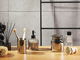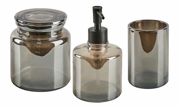 Tato sada příslušenství vám pomůže udržet koupelnu čistou a kosmetiku uspořádanou. Je vyrobena ze skla v klasickém designu s metalickým povrchem a skvěle se hodí do každé stylové koupelny. prostoru funkčnost a jedinečný styl.