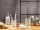 Tato elegantní a praktická sada příslušenství se stane dokonalým doplňkem každé moderní koupelny. Sestává z dávkovače s pumpičkou, sklenice, držáku na zubní kartáčky a misky na mýdlo. Všechny prvky jsou vyrobeny z čirého skla s poutavým strukturovaným povrchem. Tato stylová souprava vnese do každého interiéru glamour nádech.