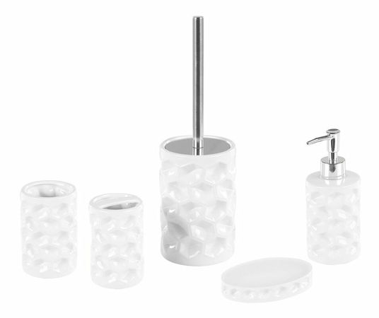 Díky této sadě koupelnových doplňků se již nemusíte obávat nepořádku v koupelně. Rozličné nádoby a praktické pomůcky vám pomohou udržet pořádek a čistotu v prostoru, přičemž vše potřebné budete mít vždy po ruce. Okouzlující bílá povrchová úprava vnese do prostoru jedinečný nádech stylu a elegance.