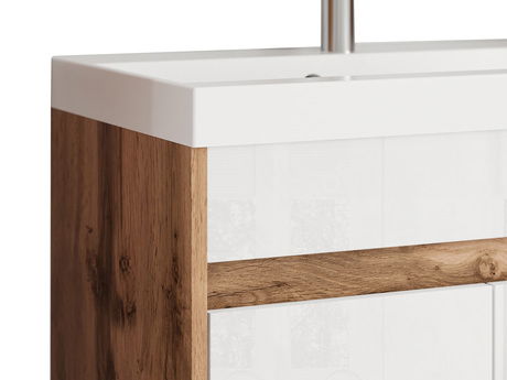 ZobrazitPokud potřebujete spoustu úložného prostoru, doporučujeme koupelnový nábytek Garmana XL. Sestava obsahuje: dvě závěsné skříňky, umyvadlovou skříňku, zrcadlo s policemi a umyvadlo. Tato moderní sada, dostupná v různých barevných provedeních, zajistí pořádek ve vašem okolí. Do skříněk můžete úspěšně umístit kosmetiku, čistící prostředky a ručníky. Jednotlivé prvky prezentovaného koupelnového nábytku nemají úchytky.