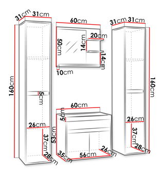 Závěsná skříňka x 2 ks: šířka: 31 cm, výška: 160 cm, hloubka: 31 cm