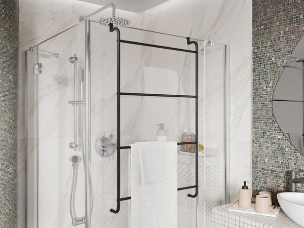 Koupelnový stojan na ručníky je ideální volbou pro ty, kteří hledají pohodlí a styl. Nakir je moderní věšák na ručníky do koupelny s háčky pro upevnění například na sprchový kout. Toto přizpůsobení usnadňuje každodenní koupání, protože to znamená, že máte ručník vždy po ruce. Několik závěsných úrovní podporuje také sušení a třídění ručníků i pro velké rodiny. Díky minimalistickému designu se koupelnový stojan na ručníky Nakir perfektně hodí do každého interiéru. Jednotná barevnost a jednoduchý tvar se budou dobře hodit jak v moderním prostředí, tak v industriálním či loftovém interiéru. Rozměry: šířka: 44 cm, výška: 73 cm, hloubka: 12 cm provedení: vyrobeno z oceli s černým práškovým nástřikem, jednoduchá a rychlá instalace Záruka: 24 měsíců