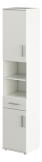 Základní výbavou každého kusu jsou police a přihrádky, popřípadě zásuvky. Promyslete si, jaké vnitřní uspořádání skříněk vám bude vyhovovat. Např. na osušky se hodí police bez dalšího dělení, na drobnou kosmetiku spíše větší množství menších přihrádek, popřípadě zásuvky.