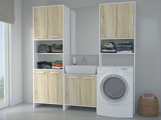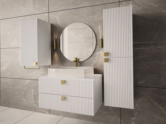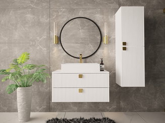 - Skříňka pod umyvadlo – součástí vybraných skříněk je také umyvadlo, což vám může výběr usnadnit. Je zabudováno přímo do skříňky, která je mu uzpůsobena na míru. U typů bez umyvadla, ho můžete dokoupit dodatečně, ale musí to být závěsný typ, který pod sebou skrývá dostatečný prostor pro danou skříňku.