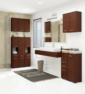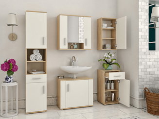 Chcete-li si ušetřit čas s vybíráním jednotlivých skříněk do koupelny, zvolte si již hotové koupelnové sestavy. Obvykle se skládají ze skříňky s umyvadlem, zrcadla a jedné nebo více větších skříněk. Velikost koupelny bude hrát klíčovou roli. Myslete však i na vhodný materiál do vlhkého prostředí. Volte dobré ukotvení skříněk, aby bylo praktické i účelné. V neposlední řadě je důležitý také celkový design koupelnového interiéru.