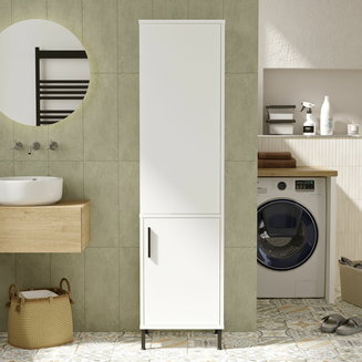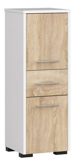 Vynikající volba pro ukládání ručníků, kosmetických potřeb nebo koše na prádlo je vysoká skříňka. Obvykle má výšku 150 cm a více. Co se týče šířky a hloubky skříně, nabídka je široká. Užší modely o šířce 30 cm skvěle vyplní prázdná místa v koupelně. Můžete si zvolit policové nebo zásuvkové postranní skříňky. U některých typů naleznete také zabudovaný koš na prádlo. Skříňka nad umyvadlo je ideální pro odložení léků a kosmetických potřeb, častokrát je její součástí i zrcadlo.