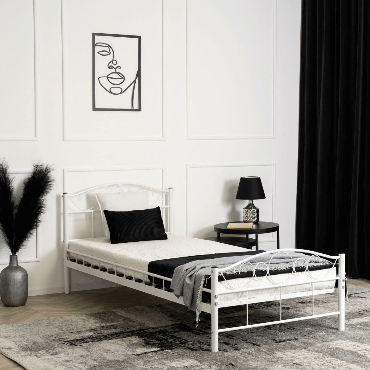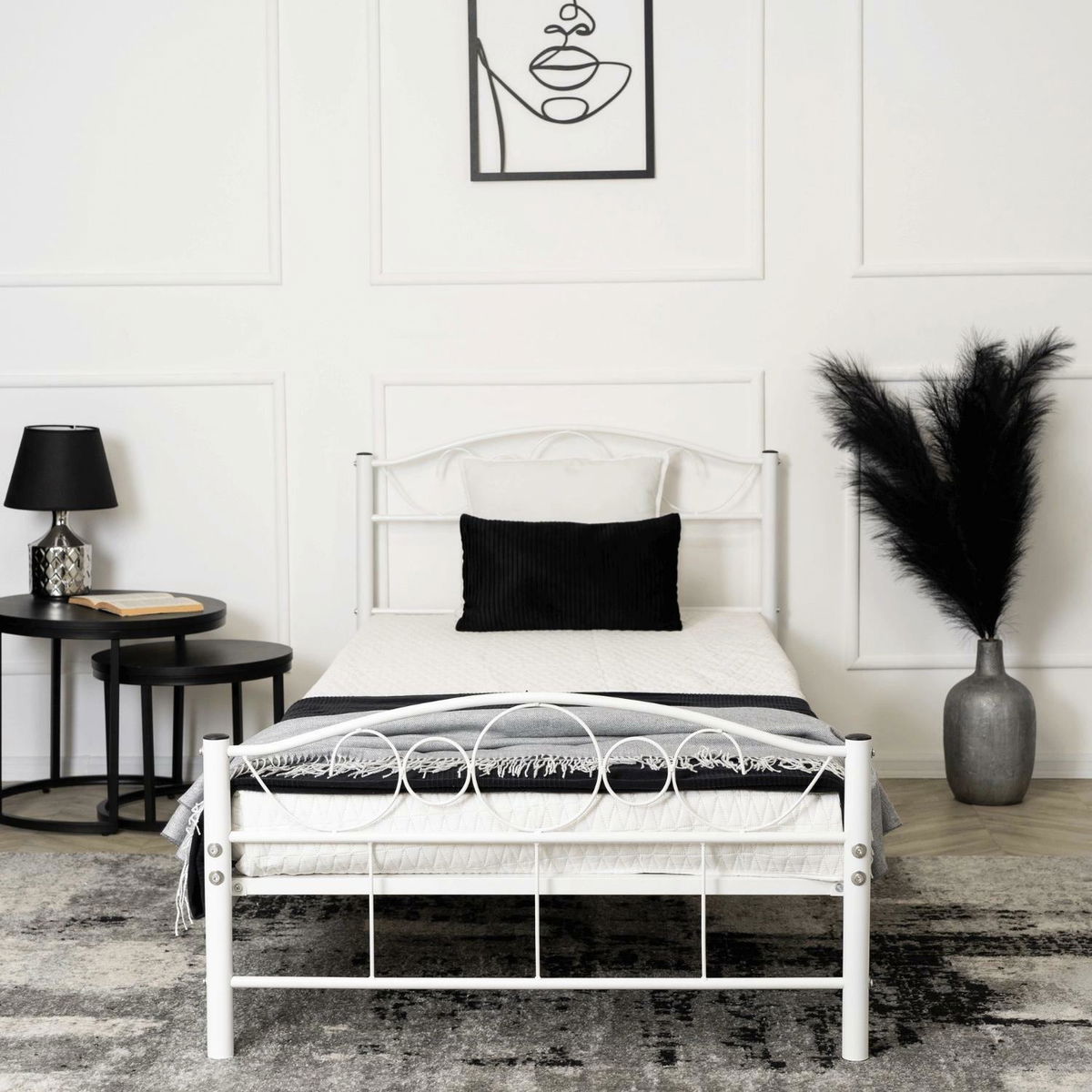 Kovová postel 90 cm Granjeros (bílá) (s roštem)