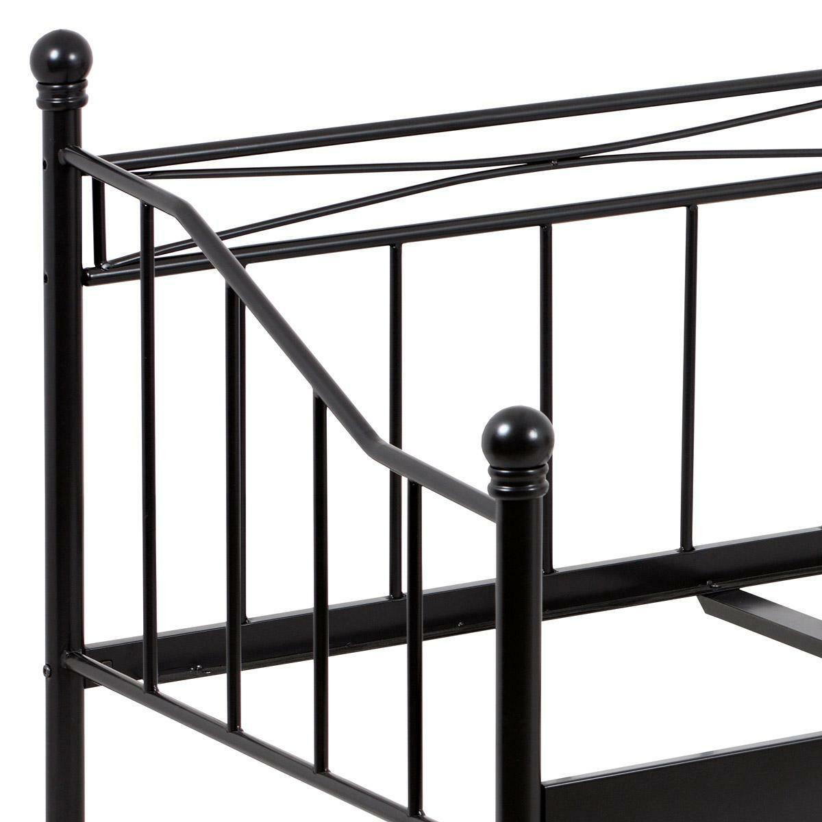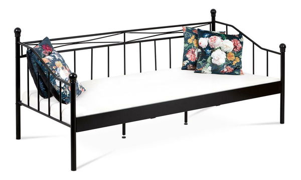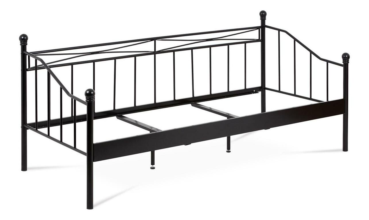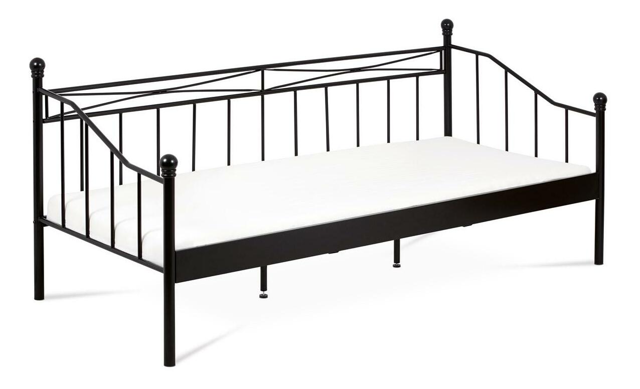 Jednolůžková kovová postel matné černé barvy. Výška bočnic je 39 cm, postel je vhodná pro matraci o rozměru 90x200 cm. Postel je dodávána bez matrace a roštu. Nosnost 100 kg.