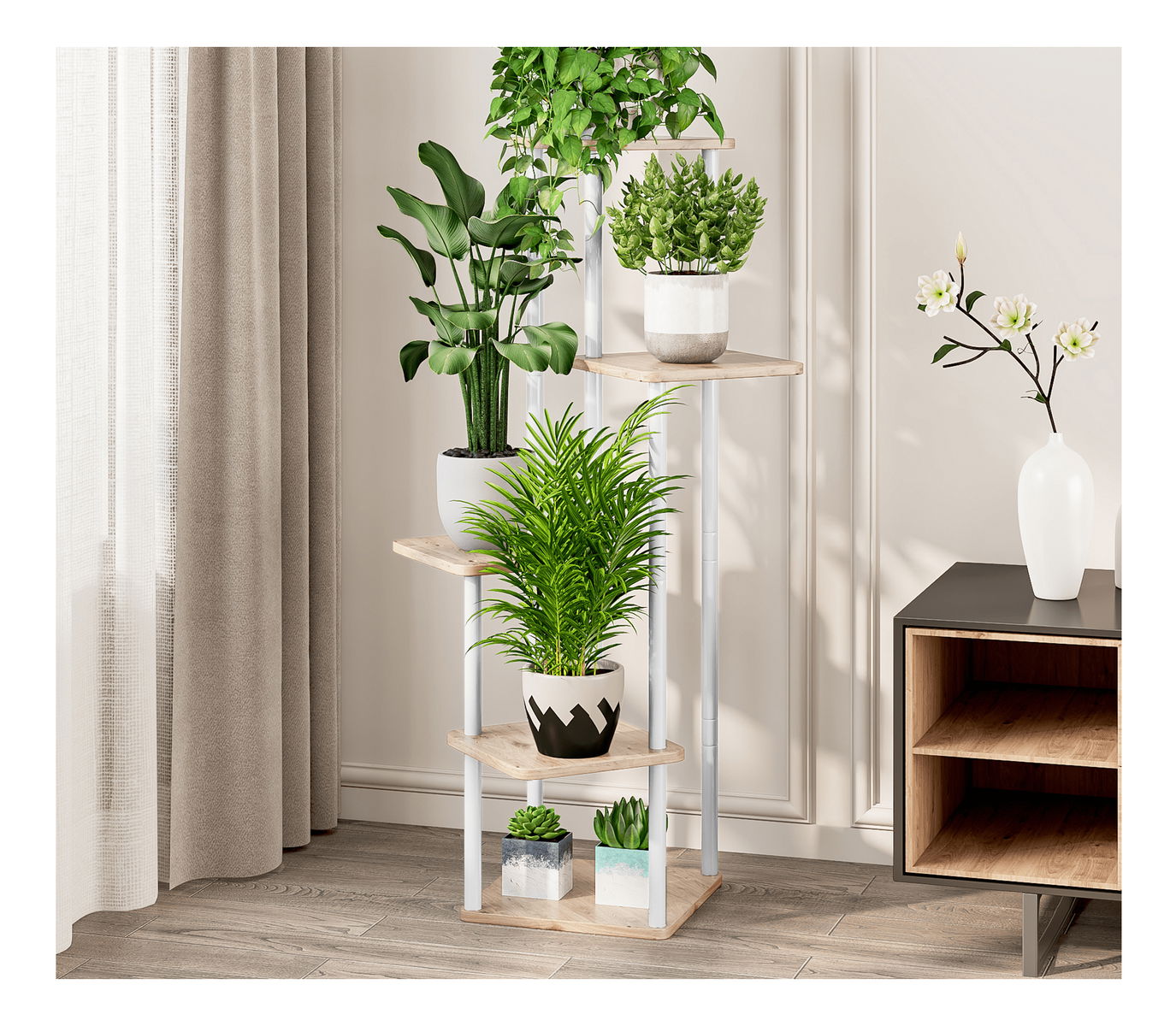 Kovový stojan na květiny Anita (bílá + dub sonoma)