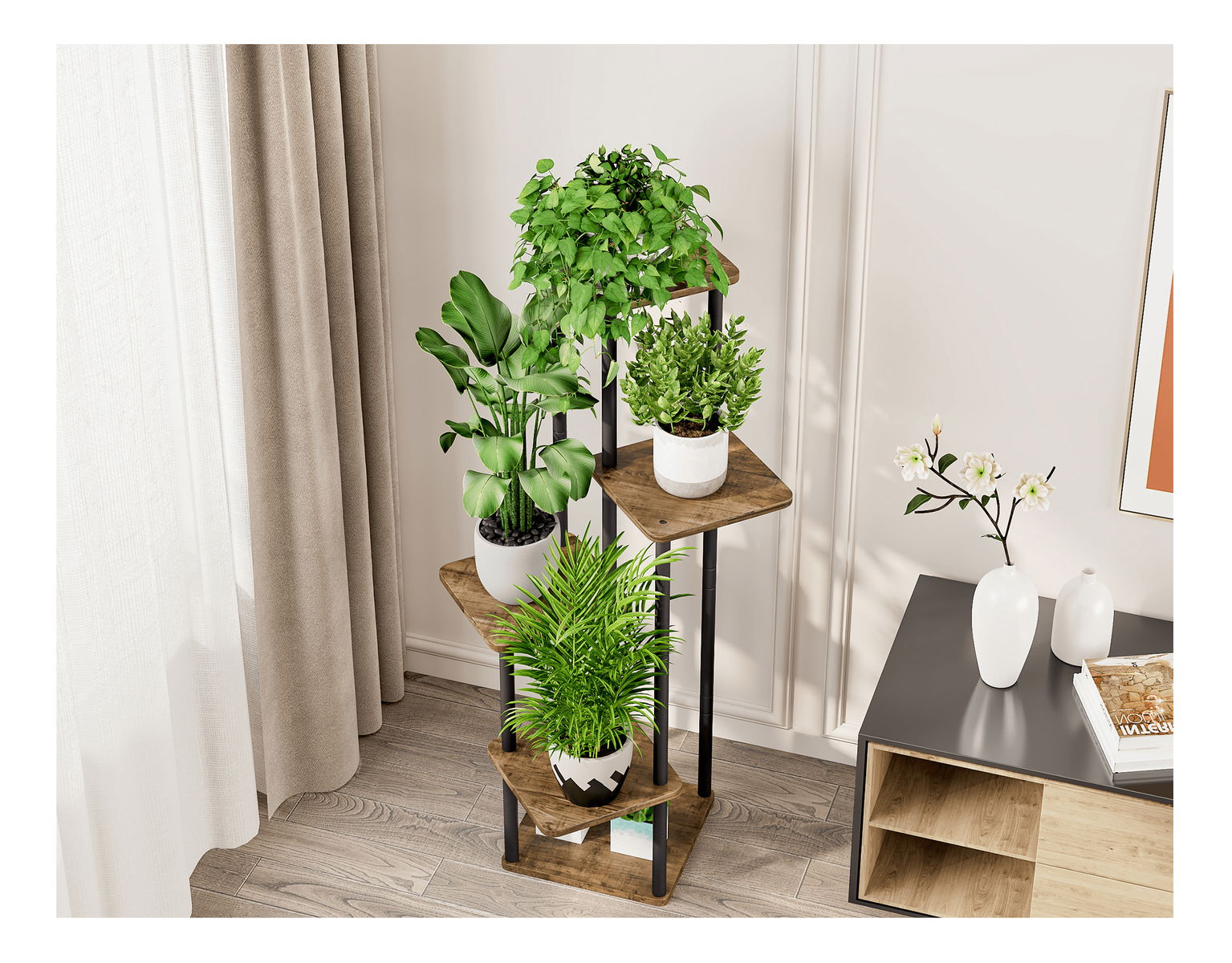 Kovový stojan na květy Anita (černá + rustikal dřevo)