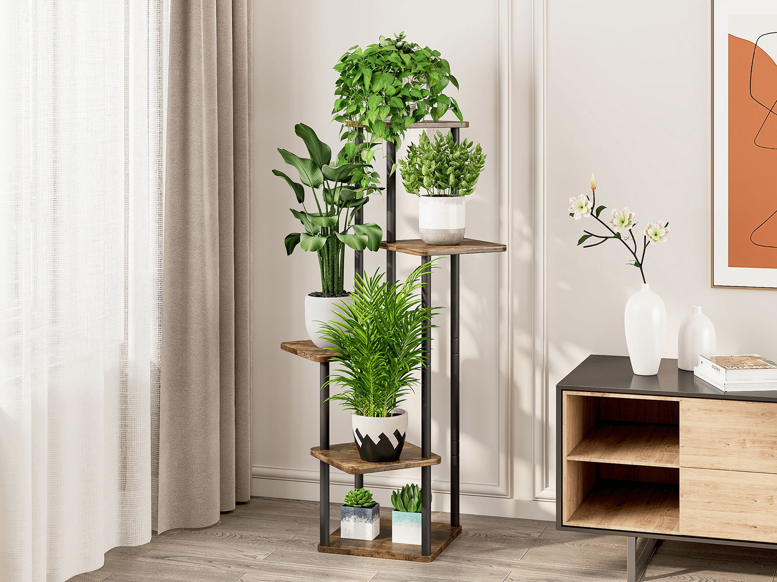 Uspořádat své oblíbené rostliny do praktického rostlinného koutku dokážete s novinkou Anita. Stojan na květiny, na kterém vynikne každá jedna rostlina. Je moderní a elegantní. Sestává z pěti rozložených polic, které vytvářejí scenérii pro jednotlivé druhy rostlin. Jeho minimalistický design v podobě stabilní kovové konstrukce v kombinaci s dřevěnými policemi přitáhne nejeden zrak kolemjdoucího návštěvníka. Barevná kombinace černého kovu s rustikálními dřevěnými policemi ještě umocňuje jeho stylový vzhled. S lehkostí as pomocí Anity můžete vyzdobit svůj obývací pokoj, ložnici nebo i předsíň.
