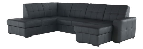 Kožená rohová sedací souprava U Thaldia (černá) (L)