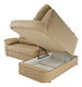 Sezení, zádová opěrka a područka jsou čalouněné kůží, korpus a zadní část z ekokůže.