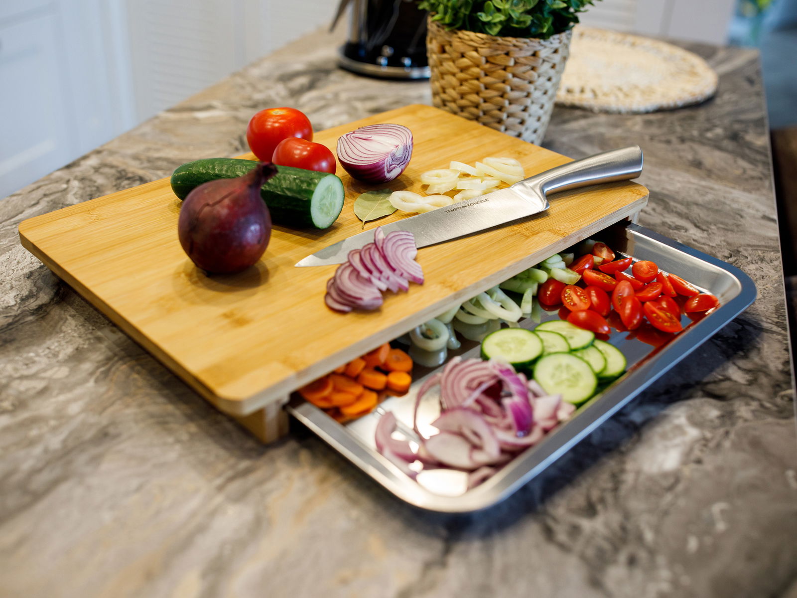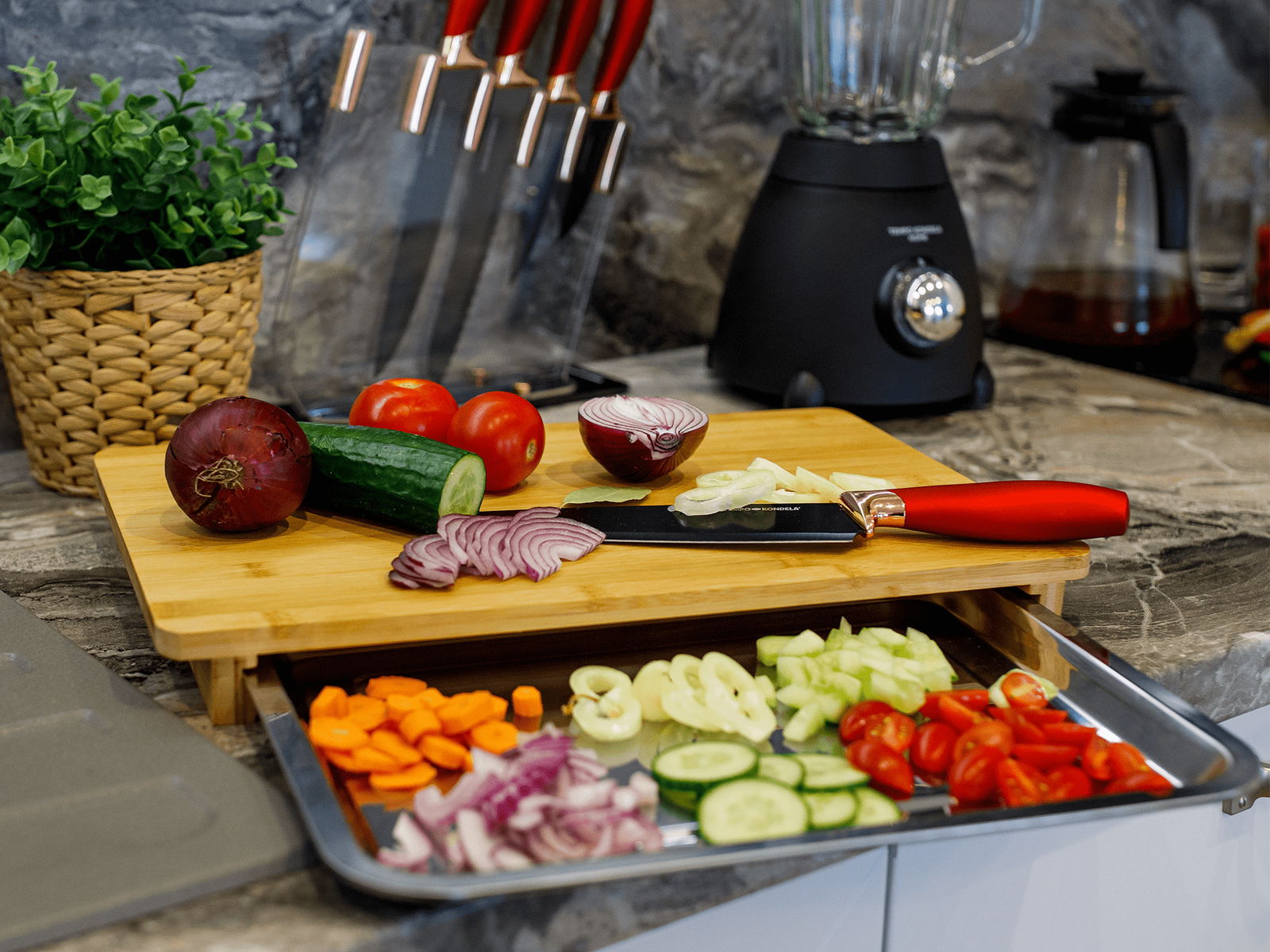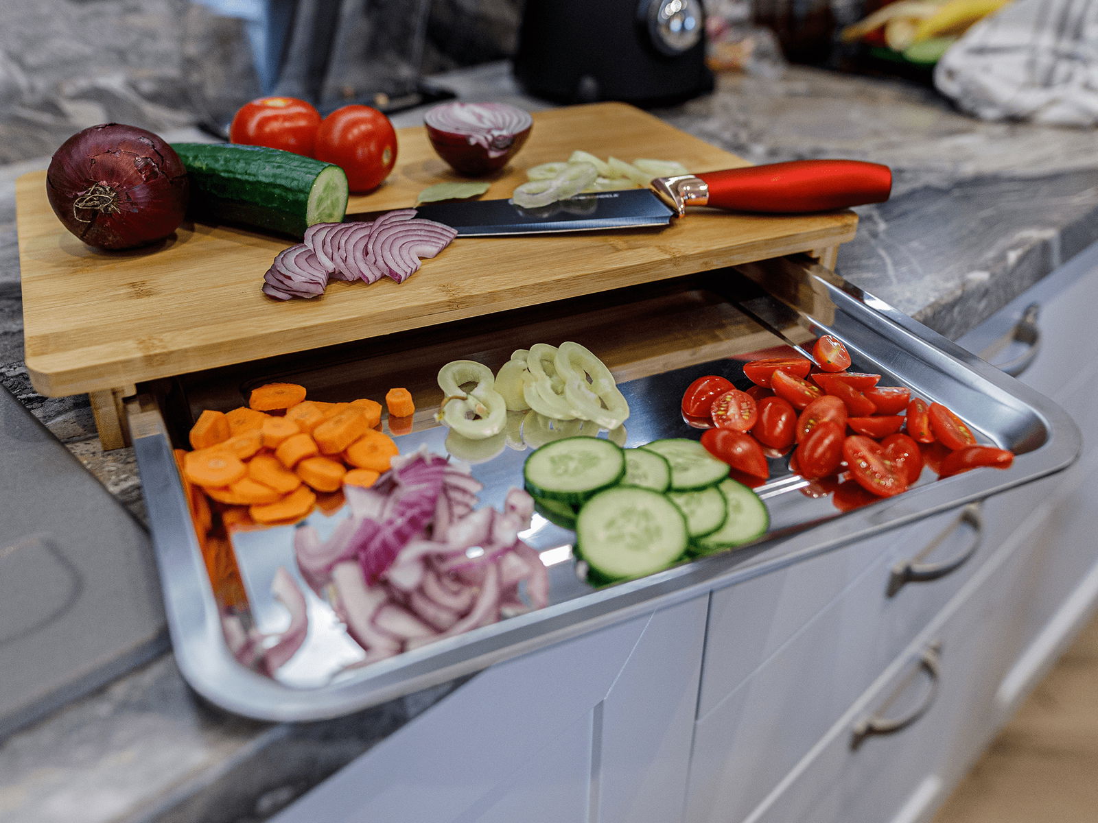 Krájecí deska se zásuvkou Tarosh 1 (bambus + ocel)