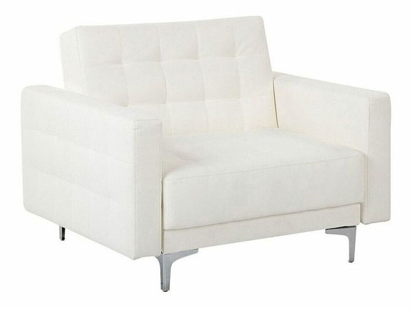 Čisté linie a komfort jsou charakteristickými rysy tohoto křesla s nastavitelným opěradlem, díky kterému jej lze v mžiku rozložit na pohodlné lehátko. Křeslo je čalouněno velmi kvalitní umělou kůží s elegantním prošíváním a díky stylovému bílému provedení se hodí k jakémukoli zařízení. Díky modulárnímu designu jej lze kombinovat s jinými kusy nábytku ze stejné kolekce a vytvořit si tak sedací sestavu šitou na míru. Stabilitu křesla zaručují kovové nohy.