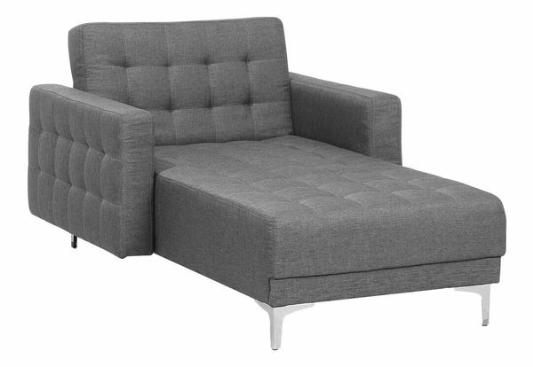 Díky nastavitelnému opěradlu vám tato moderní lenoška poslouží také jako pohodlná denní postel. Je čalouněna vysoce kvalitní a stylovou šedou látkou s elegantním prošíváním a hodí se do moderního, ale také tradičně zařízeného interiéru. Díky modulárnímu designu ji lze kombinovat s jiným nábytkem ze stejné kolekce a vytvořit sedací sestavu podle vlastních představ. Stabilitu lenošky zaručují kovové nohy.