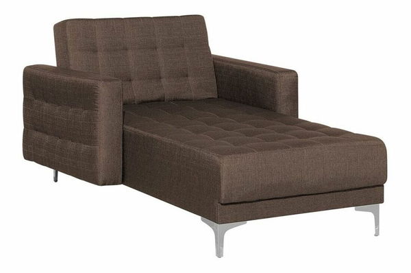 Díky nastavitelnému opěradlu vám tato moderní lenoška poslouží také jako pohodlná denní postel. Je čalouněna vysoce kvalitní a stylovou hnědou látkou s elegantním prošíváním a hodí se do moderního, ale také tradičně zařízeného interiéru. Díky modulárnímu designu ji lze kombinovat s jiným nábytkem ze stejné kolekce a vytvořit sedací sestavu podle vlastních představ. Stabilitu lenošky zaručují kovové nohy.