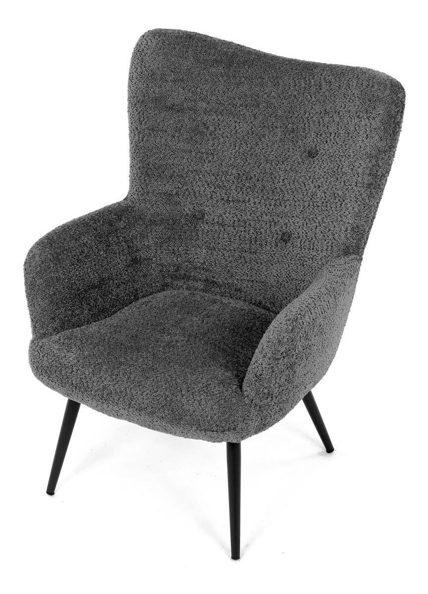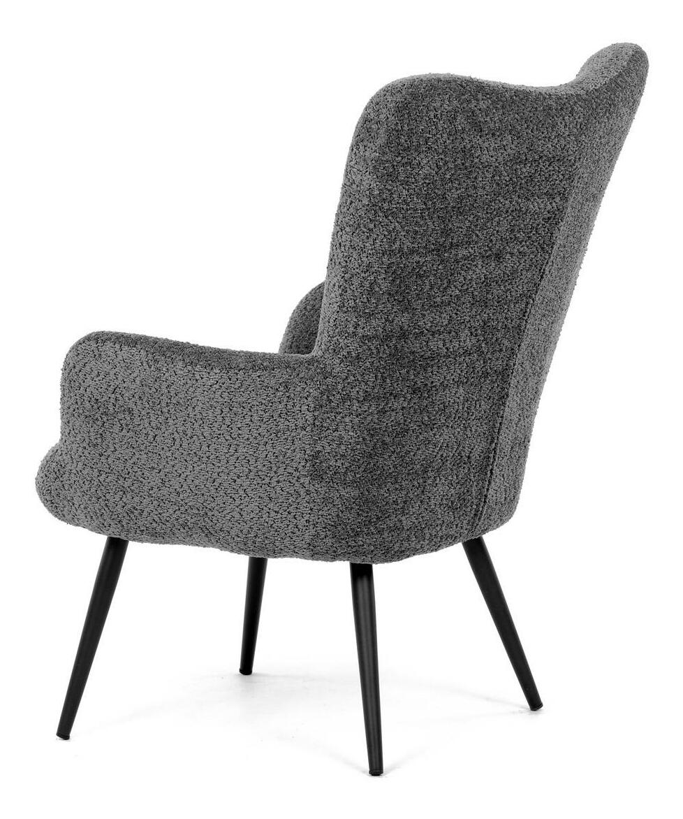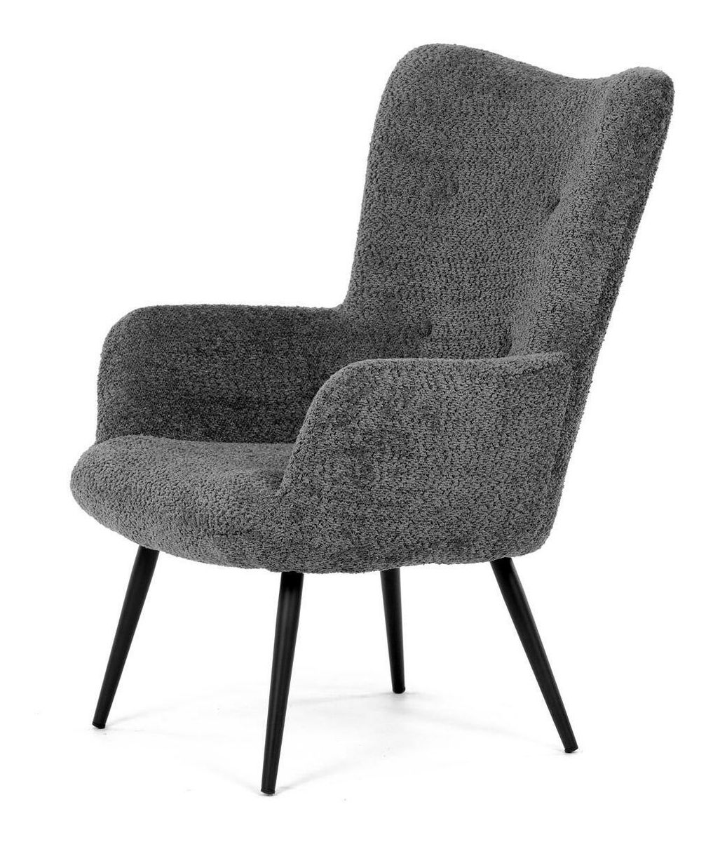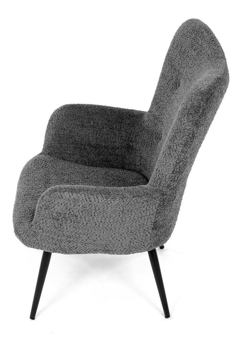 ZobrazitElegantní křeslo ušák vnese do vašeho obývacího pokoje pohodlí a styl. Šedé čalounění z látky Bouclé působí jemně a moderně, zatímco ergonomicky tvarované područky a opěradlo s jemnými knoflíky zajišťují maximální komfort. Stabilní kovové nohy s černým povrchem dodávají křeslu industriální nádech a zajišťují pevnost i při každodenním používání. Toto křeslo je ideální pro chvíle relaxace s knihou nebo při posezení s přáteli. Díky svému jednoduchému designu snadno zapadne do každého interiéru.