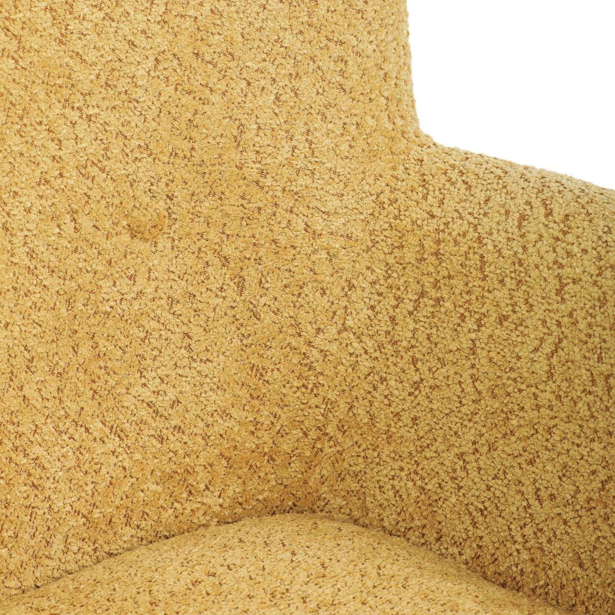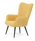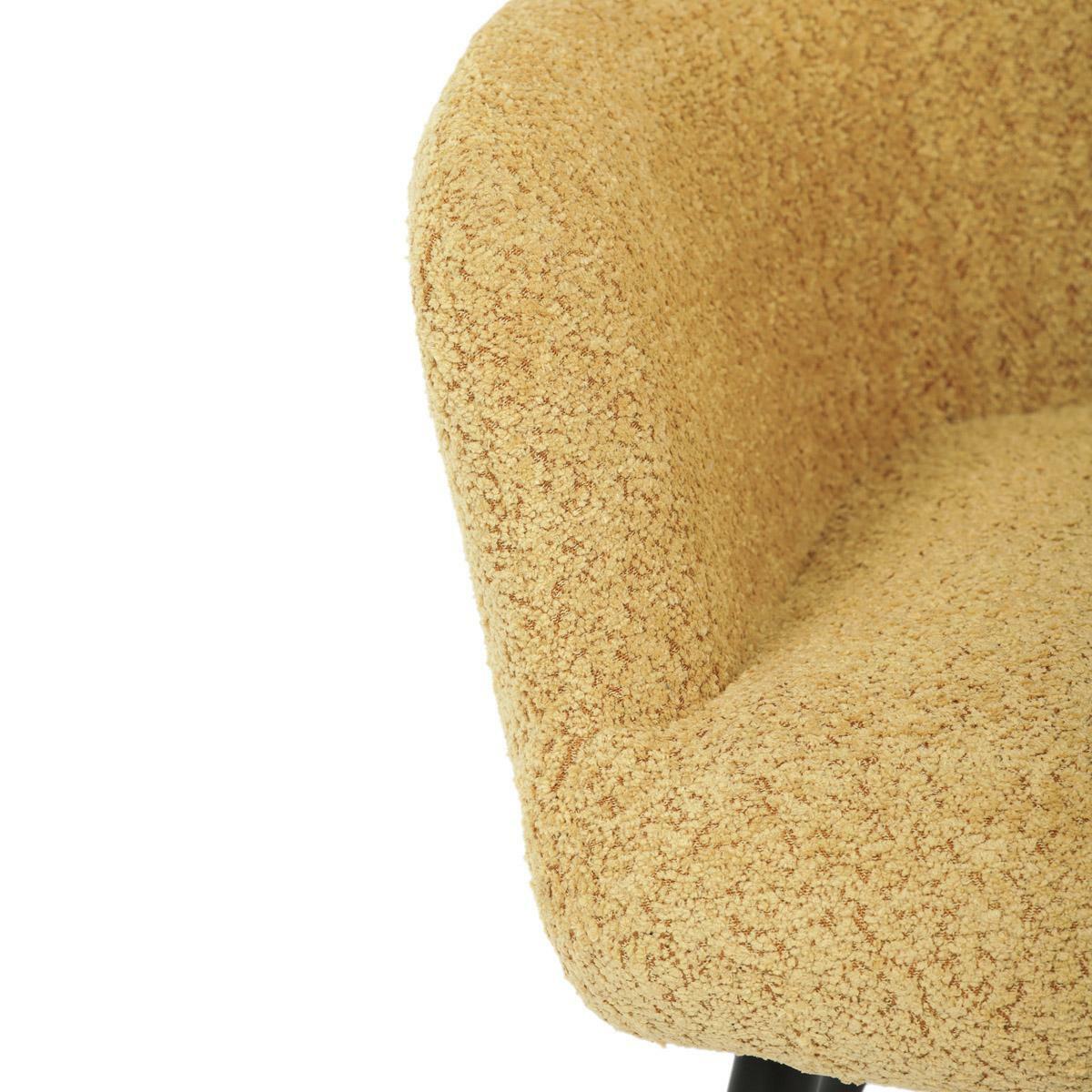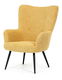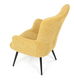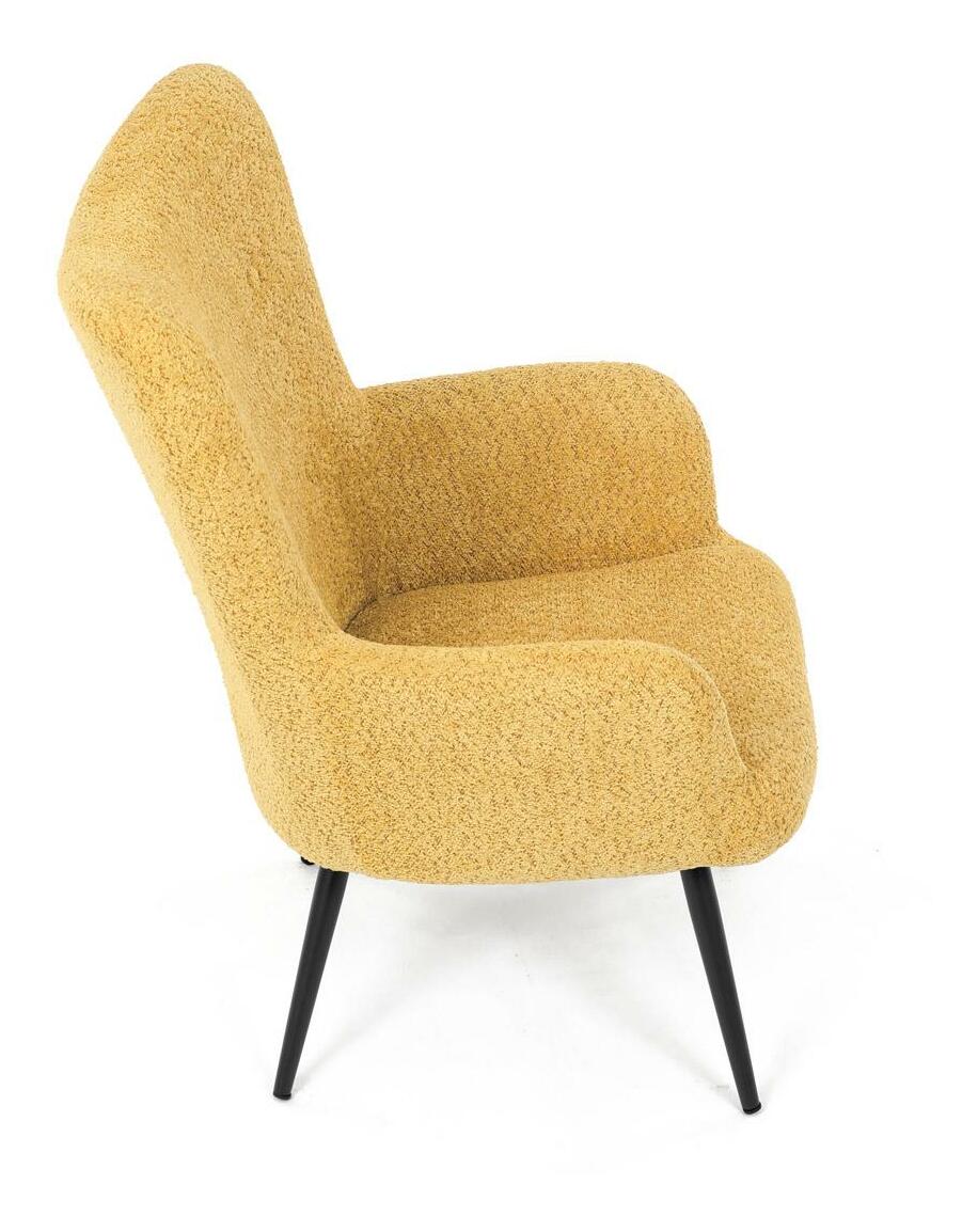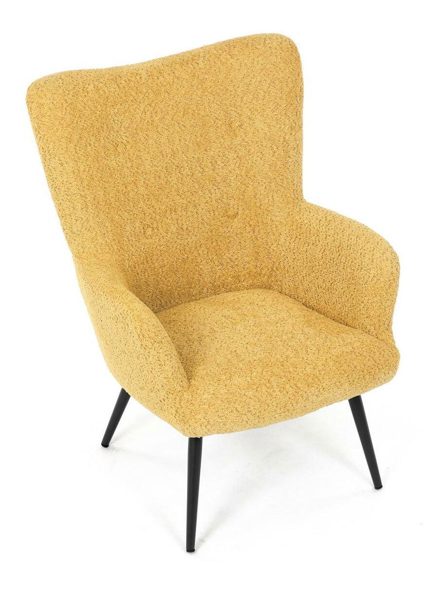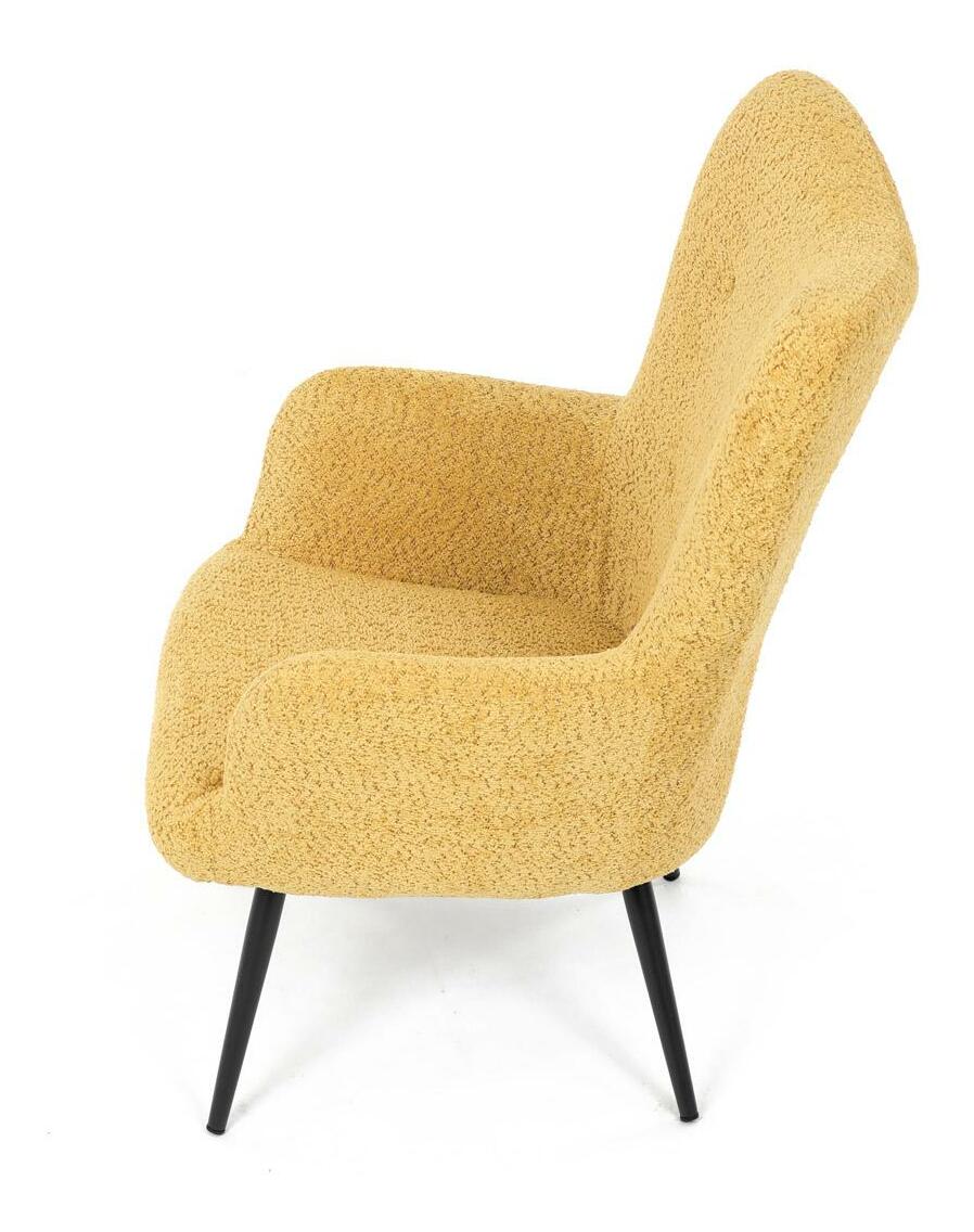 Elegantní křeslo ušák vnese do vašeho obývacího pokoje pohodlí a styl. Žluté čalounění z látky Bouclé působí jemně a moderně, zatímco ergonomicky tvarované područky a opěradlo s jemnými knoflíky zajišťují maximální komfort. Stabilní kovové nohy s černým povrchem dodávají křeslu industriální nádech a zajišťují pevnost i při každodenním používání. Toto křeslo je ideální pro chvíle relaxace s knihou nebo při posezení s přáteli. Díky svému jednoduchému designu snadno zapadne do každého interiéru.