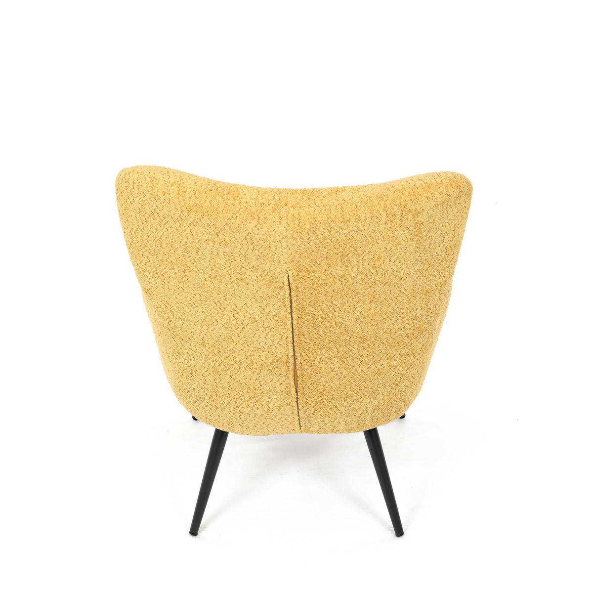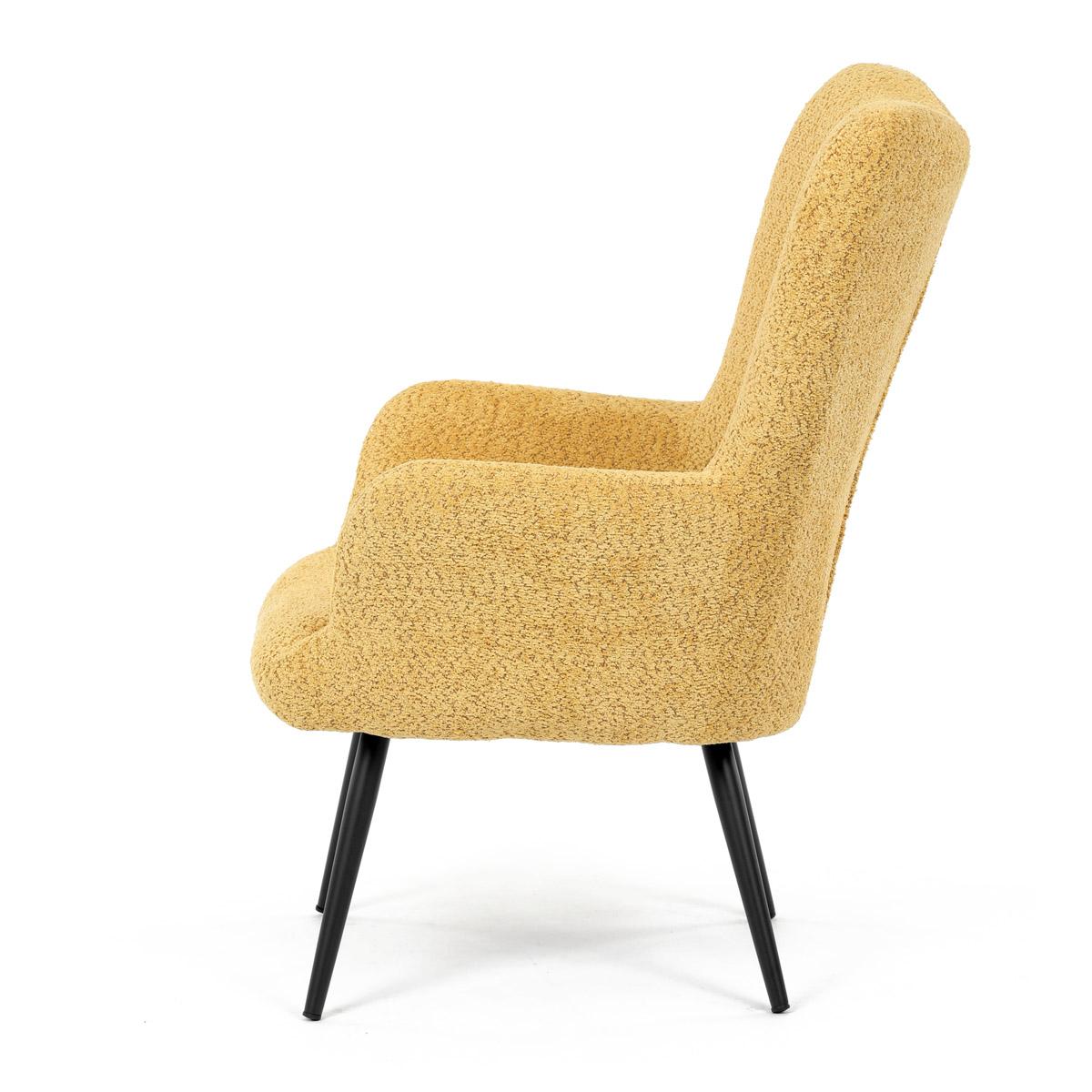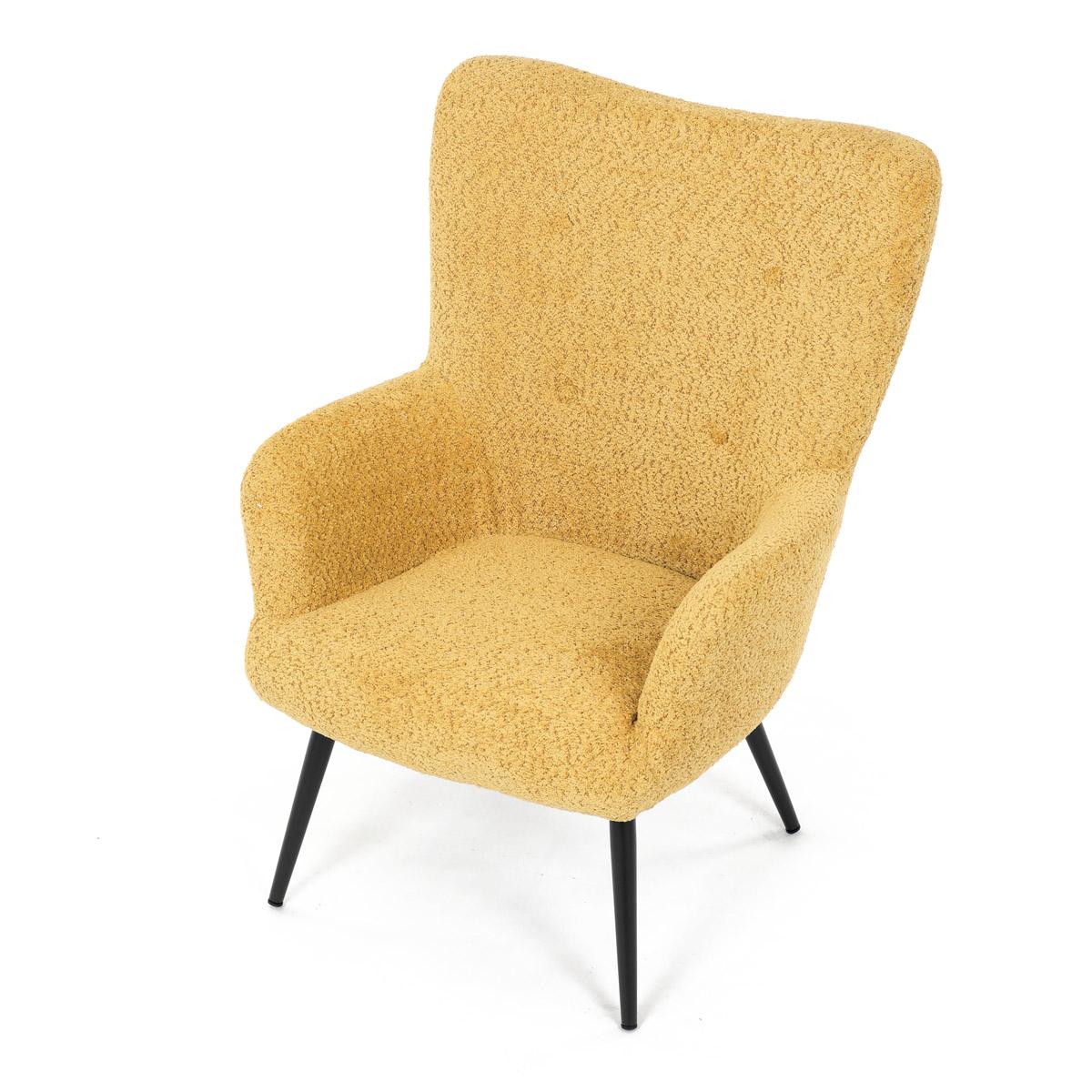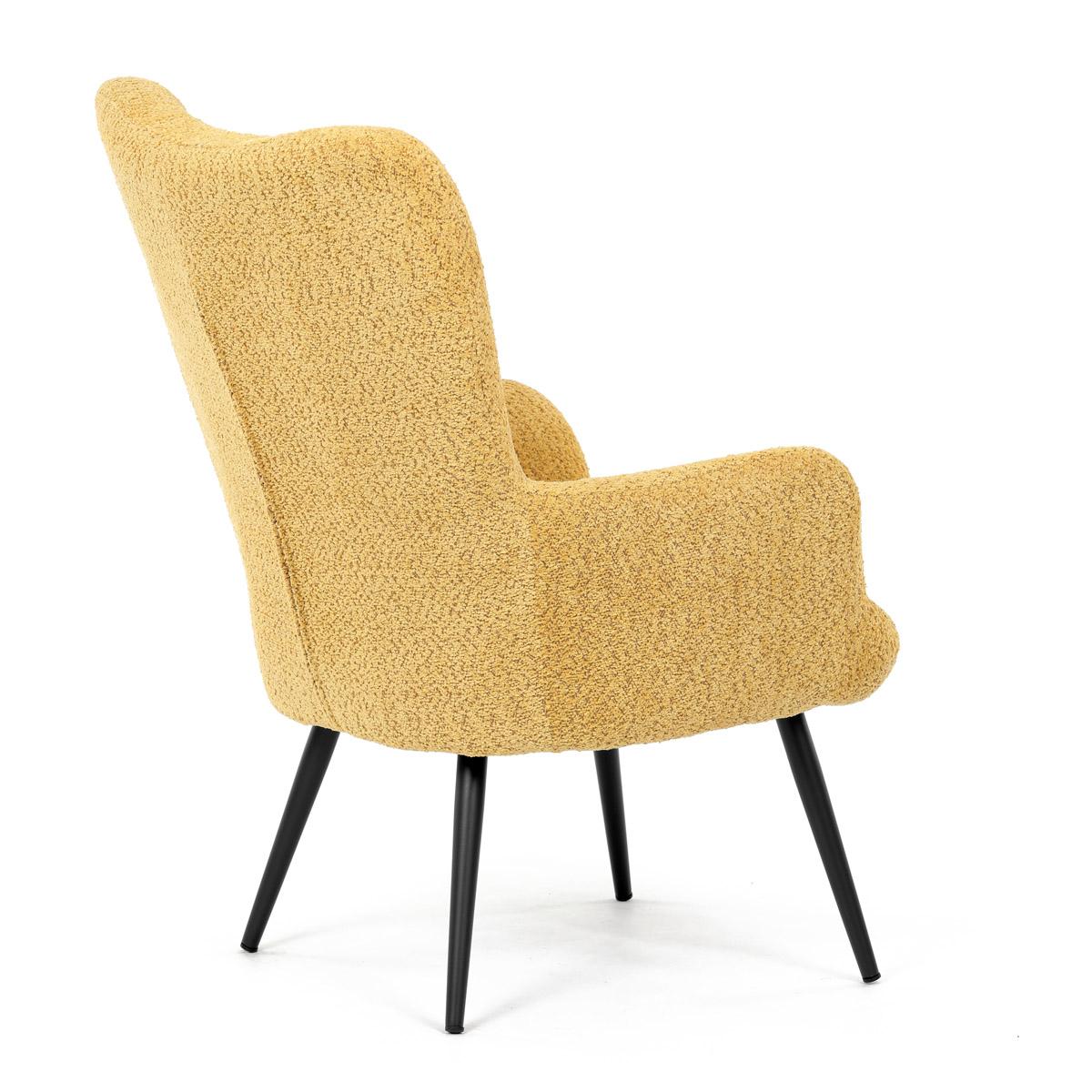 ZobrazitElegantní křeslo ušák vnese do vašeho obývacího pokoje pohodlí a styl. Žluté čalounění z látky Bouclé působí jemně a moderně, zatímco ergonomicky tvarované područky a opěradlo s jemnými knoflíky zajišťují maximální komfort. Stabilní kovové nohy s černým povrchem dodávají křeslu industriální nádech a zajišťují pevnost i při každodenním používání. Toto křeslo je ideální pro chvíle relaxace s knihou nebo při posezení s přáteli. Díky svému jednoduchému designu snadno zapadne do každého interiéru.