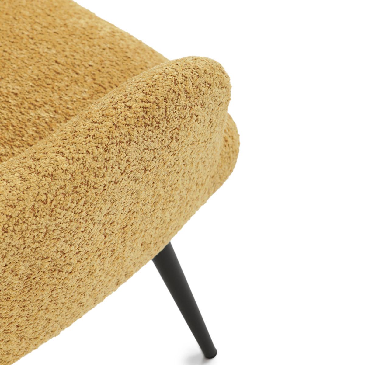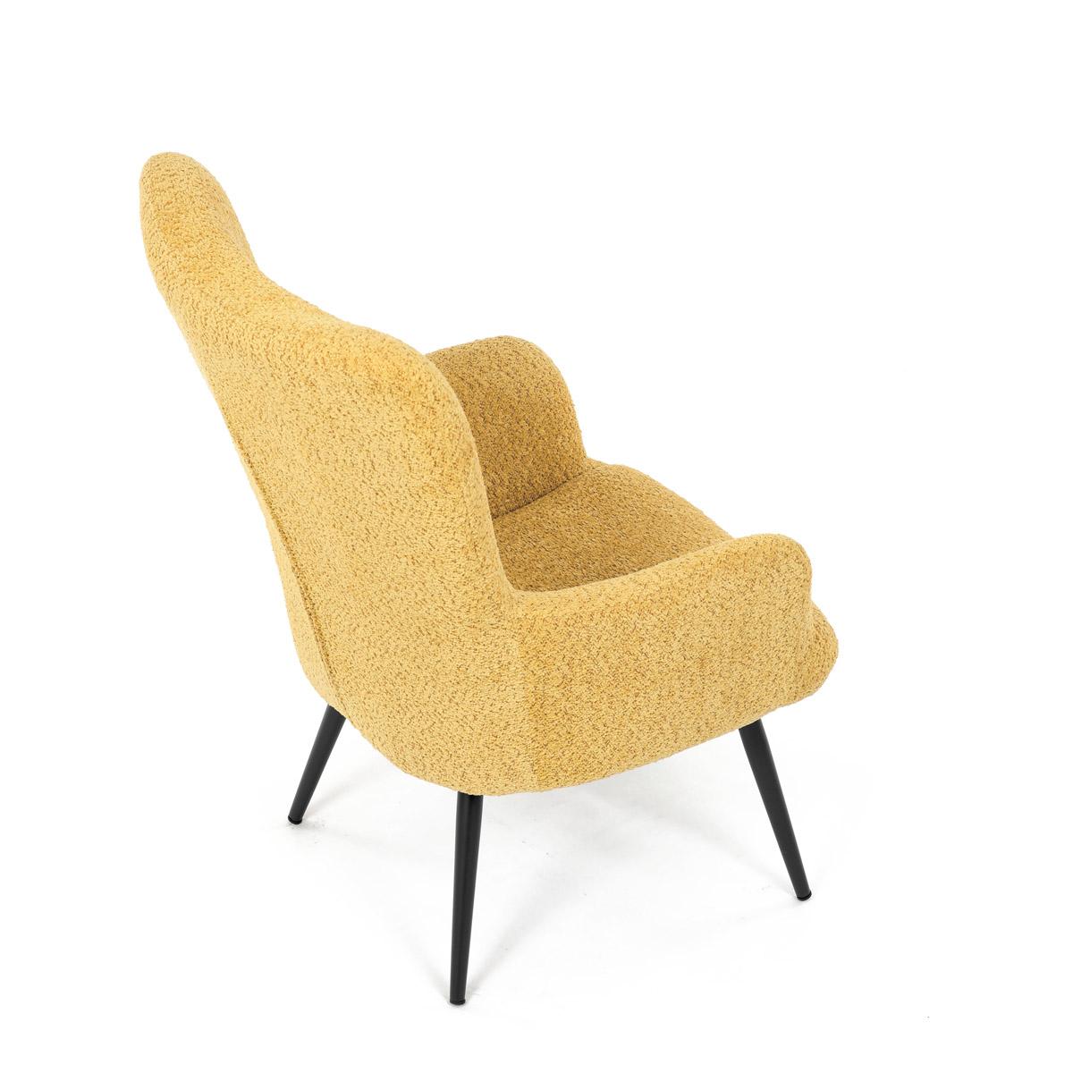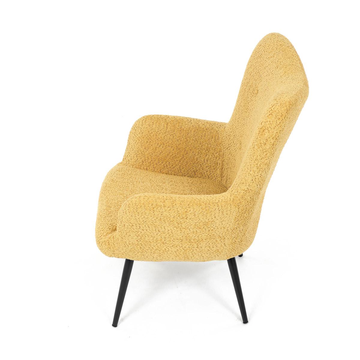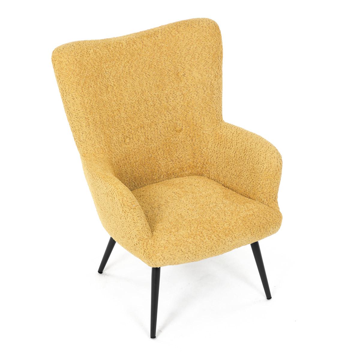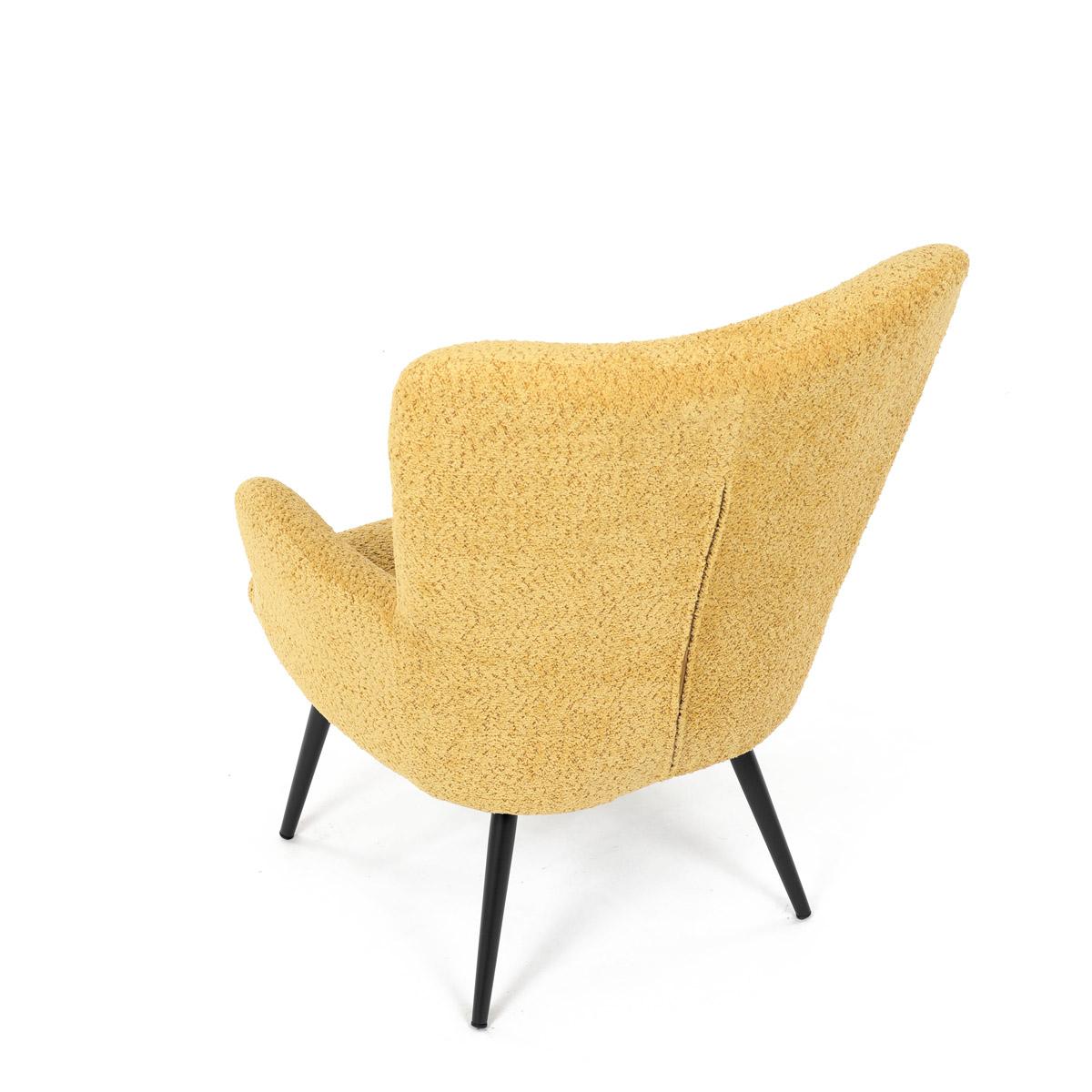 ZobrazitElegantní křeslo ušák vnese do vašeho obývacího pokoje pohodlí a styl. Žluté čalounění z látky Bouclé působí jemně a moderně, zatímco ergonomicky tvarované područky a opěradlo s jemnými knoflíky zajišťují maximální komfort. Stabilní kovové nohy s černým povrchem dodávají křeslu industriální nádech a zajišťují pevnost i při každodenním používání. Toto křeslo je ideální pro chvíle relaxace s knihou nebo při posezení s přáteli. Díky svému jednoduchému designu snadno zapadne do každého interiéru.
