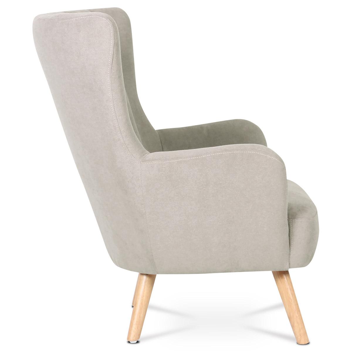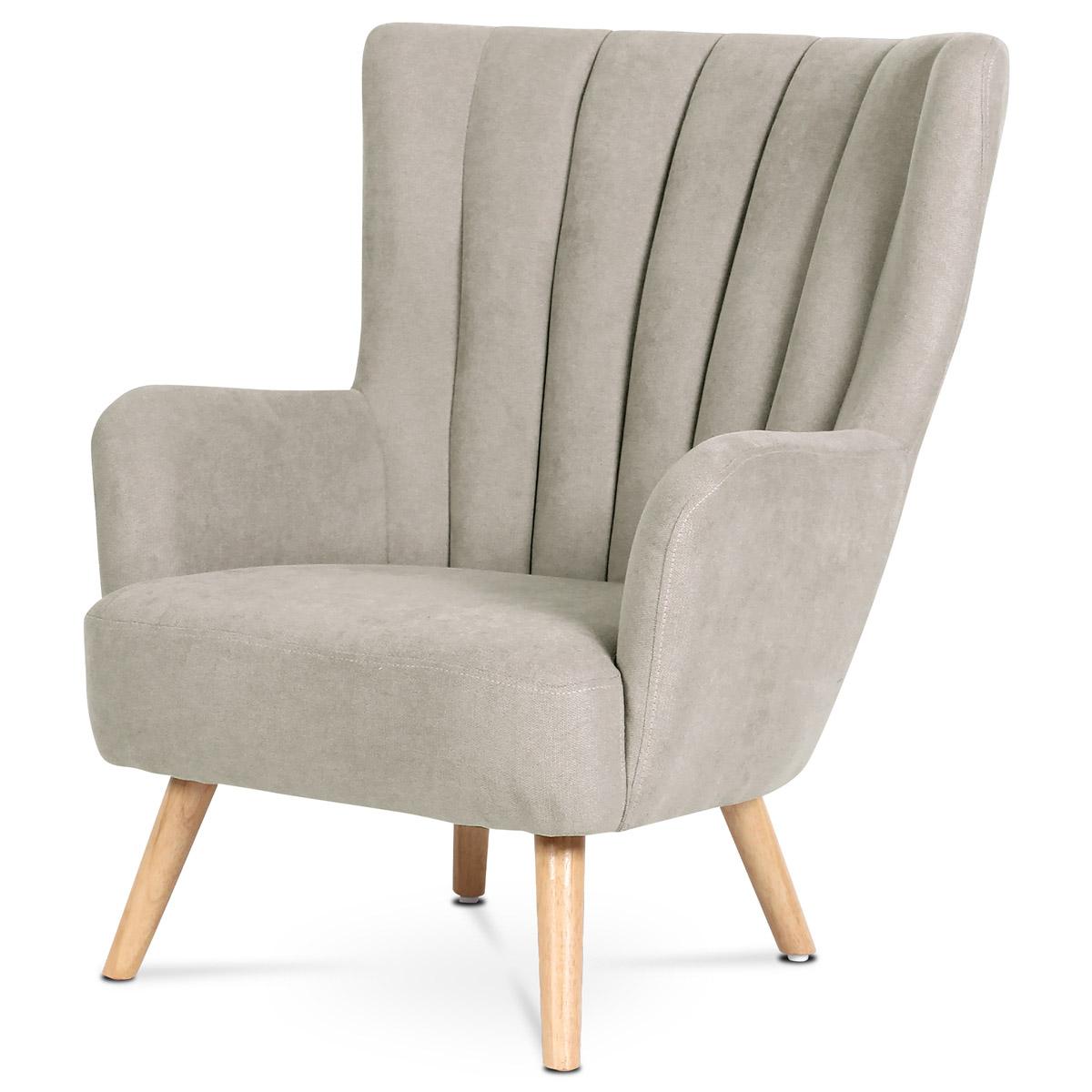 ZobrazitMasivní retro křeslo s dekorativním prošitím opěradla okouzluje svým designem a je poutavým prvkem obytného prostoru zařízeného ve stylu moderním nebo třeba hygge. Díky vysokému opěradlu a pohodlným područkám zajišťuje křeslo více než příjemné posezení a relaxaci po náročném dni. Potah je z komfortní stříbrnobéžové látky, kostra křesla z masivu a výplň z kvalitní PU pěny zpevněné v místě sedáku elastickými popruhy. Dřevěné nohy jsou z masivního kaučukovníku, kónické, v přírodním odstínu a lakované. Ze spodu jsou plastové kluzáky, u zadních nohou jsou rektifikovatelné. Světlá výška křesla je 22 cm, výška područek je 57 cm a šířka 8 cm. Nosnost 130 kg. Křeslo svým vzhledem přímo vybízí k pohodlnému posezení - například s knihou, šálkem kávy či sklenkou dobrého vína.