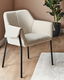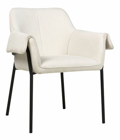 Toto křeslo je dokonalou kombinací pohodlí, stylu a funkčnosti a je dokonalým doplňkem každého moderního prostoru. Má krémové čalounění vyrobeno z odolné polyesterové tkaniny, díky které je velmi příjemné na dotek a zároveň nenáročné na údržbu. Je umístěno na černých kovových nohách a je velmi stabilní a pohodlné. Díky klasickému designu v kombinaci s netradičními područkami se tento kousek hodí k různým stylům interiérového zařízení.