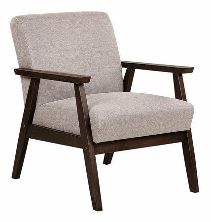 Vylepšete vzhled svého interiéru tímto stylovým křeslem v retro stylu. Čalounění je vyrobeno z odolné polyesterové tkaniny, která se snadno udržuje, což znamená, že křeslo vám bude sloužit léta. Šedobéžovou barvu čalounění zvýrazňuje rám v barvě tmavého dřeva, který zároveň zajišťuje stabilitu křesla. Doplňte svůj obývací pokoj nebo ložnici tímto nádherným retro kouskem.