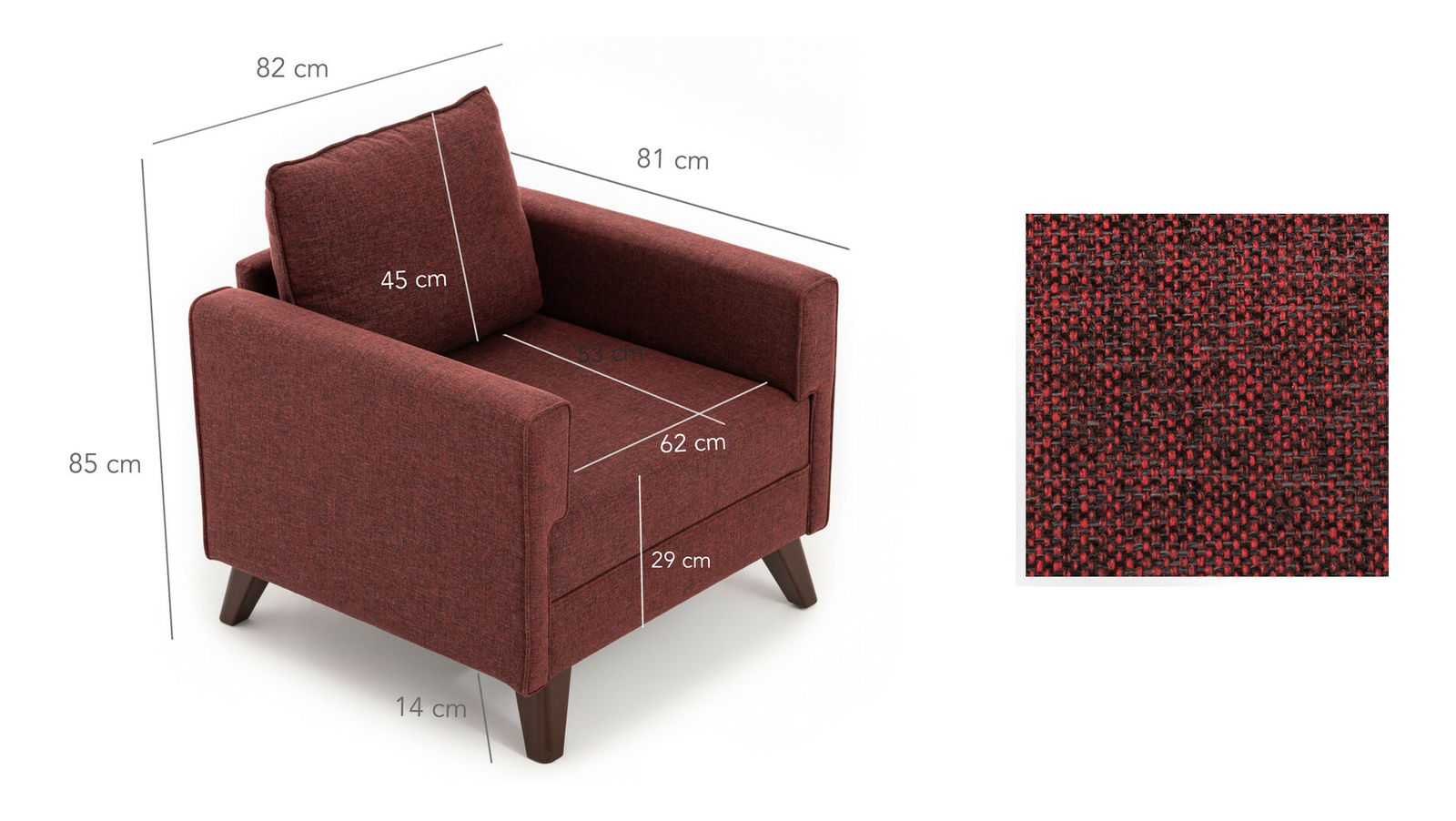 ZobrazitKřeslo Bellina v červené barvě je dokonalým doplňkem pro váš domov nebo kancelář. S výškou 85 cm, šířkou 82 cm a hloubkou 81 cm je dostatečně pohodlné k sezení i relaxaci. Křeslo je vyrobeno z kvalitního dřeva a MDF materiálu, což zaručuje jeho pevnost a trvanlivost. Jeho moderní design a elegantní červená barva dodají vašemu interiéru stylový vzhled. S Bellinou si užijete nejen pohodlí, ale také skvělý design v jednom produktu.