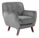 Toto křeslo s nádherně tvarovaným designem se postará o maximální pohodlí. Opěradlo s prošíváním, boční opěrky a šikmé dřevěné nohy jsou inspirovány retro stylem. Křeslo je čalouněno odolným polyesterovým sametem v neutrálním šedém odstínu. Polštář na sedadle je bohatě vyztužený pěnou, nabízí nejvyšší úroveň pohodlí a má snímatelný potah, díky kterému se snadno udržuje.