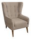 Křeslo je vyplněno pěnou a vlnitými pružinami.