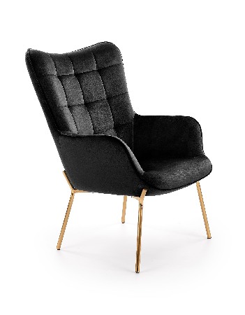 Křeslo Camie 2 (černá) o výšce 97 cm a hloubce 79 cm je dokonalou volbou pro váš obývací prostor. Jeho černá sametová látka spolu s chromovanou ocelí ve zlaté barvě vytváří moderní vzhled. Výška sedu přibližně 44 cm zajistí pohodlné sezení. Křeslo je vyrobeno z kvalitních materiálů, což zaručuje jeho dlouhou životnost. S tímto křeslem si jistě dopřejete pohodlné a elegantní sezení.