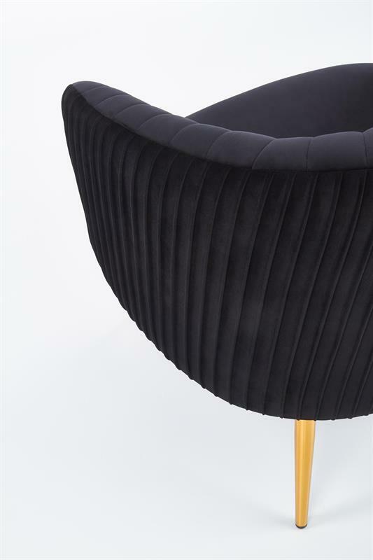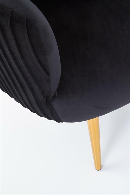 Křeslo Carmina s černou sametovou látkou a zlatými detaily je vysoké 80 cm a má hloubku 72 cm. Toto křeslo není jen elegantní, ale také pohodlné, s výškou sedu 45 cm. Jeho sedák a opěradlo jsou vyrobeny z měkkého a příjemného sametového materiálu, který se dokonale hodí do každého interiéru. Část nohou je vyrobena z chromované oceli, což dodává křeslu moderní vzhled a zaručuje jeho pevnost a stabilitu. Toto křeslo jistě zaujme každého, kdo hledá kvalitní a stylový kus nábytku pro svůj domov nebo kancelář.