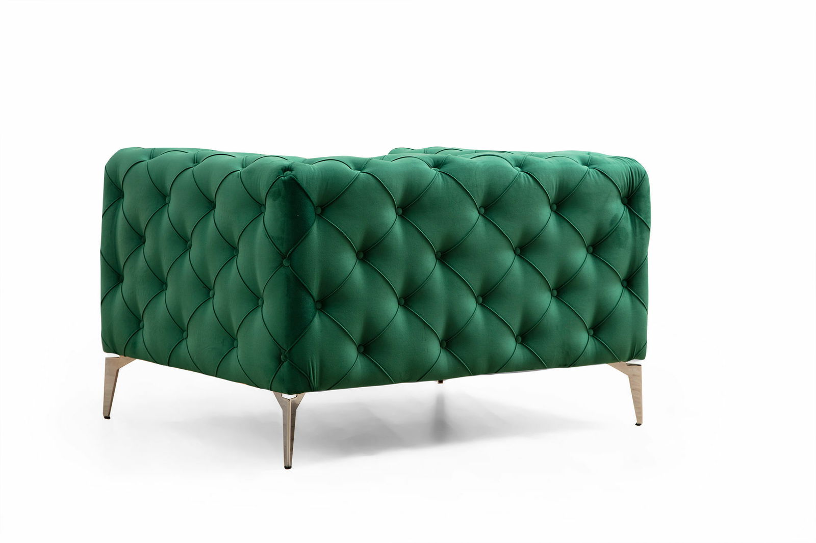 Křeslo - Collo (zelená) je moderní a pohodlný kus nábytku, který doplní váš interiér. S výškou 73 cm, šířkou 108 cm a hloubkou 90 cm poskytuje dostatek prostoru pro maximální pohodlí. Jeho zelená barva přidává do vašeho domova osvěžující atmosféru. Křeslo je vyrobeno z kvalitního bukového dřeva a dřevotřísky, což zaručuje jeho pevnost a trvanlivost. Tento produkt je ideální pro ty, kdo hledají spojení elegance, komfortu a kvality. Užijte si relaxaci a odpočinek v tomto nádherném křesle – Collo (zelená).
