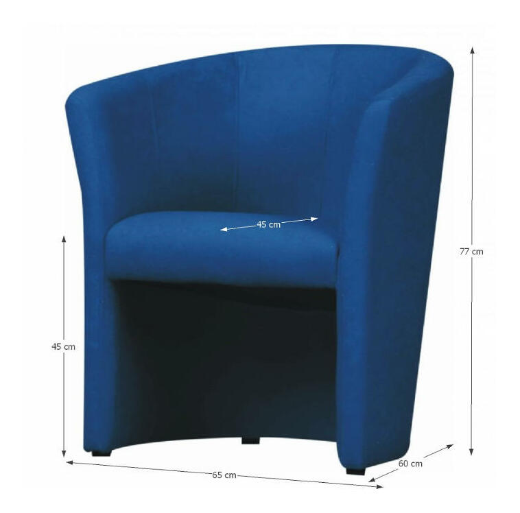 Křeslo Cubali (micro modrá) o výšce 77 cm a hloubce 60 cm je moderní nábytek ideální pro kavárny, kanceláře nebo obývací pokoj. Je čalouněno v modré mikrofázi s odolností proti opotřebení až 85 000 třením podle testu Martindale. K dispozici jsou také individuální barevná provedení, včetně 5 barev mikrofáze, 6 prémiových barev ekokůže a 3 barev šenilu Lava. Dodací doba pro individuální barevné provedení je 6-8 týdnů. Křeslo má nosnost až 120 kg a rozměry 65x60x77 cm. Pro objednání stačí uvést požadovanou barevnou kombinaci v poznámce nebo kontaktovat prodejce mailem nebo telefonicky. Galerii s vzorníkem naleznete na stránce prodejce.