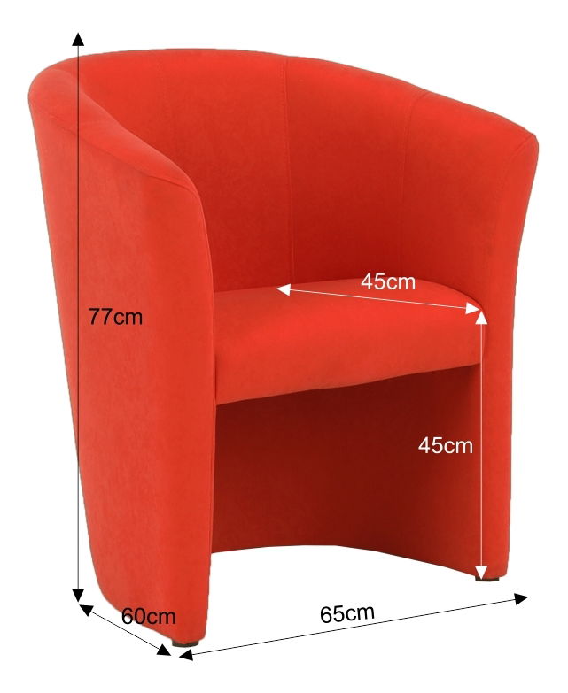 Křeslo Cubali (mikro oranžová) o výšce 77 cm a hloubce 60 cm je moderní křeslo, které je vhodné do kaváren, kanceláří nebo obývacích pokojů. Je čalouněno látkou mikrofáze oranžová a má oděruodolnost textilie podle testu Martindale: 85 000 oděrů. Křeslo je v dostupné v 5 barevných provedeních látky Mikrofáze, 6 barevných příplatkových provedeních ekokůže a 3 barevných provedeních látky šenil Lava. Pro individuální barevné provedení je zapotřebí 6-8 týdnů k dodání. Vzorník naleznete v galerii. Křeslo má rozměry (ŠxHxV) 65x60x77 cm a nosnost 120 kg. Vyberte si svoji barevnou kombinaci a uveďte ji do poznámky při objednávce nebo nás kontaktujte mailem nebo telefonicky.