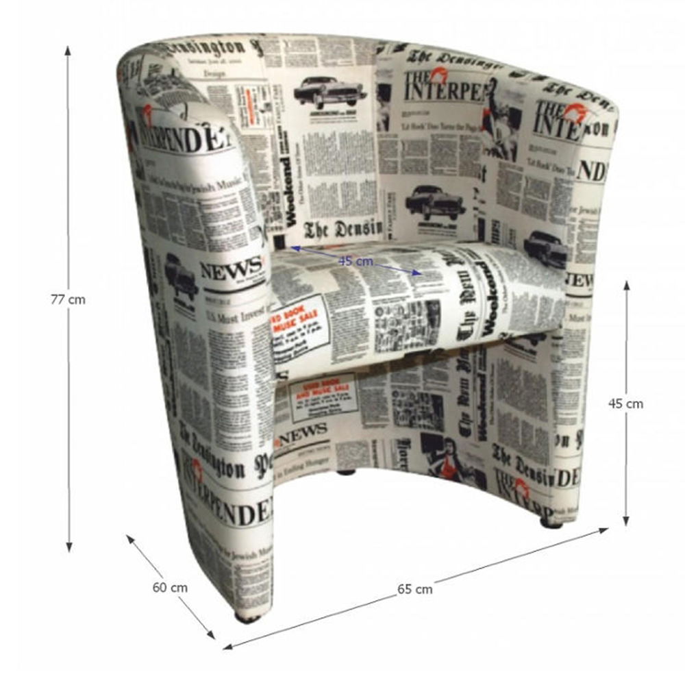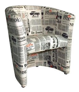 Designové křeslo extravagantního stylu upoutá pozornost každé vaší návštěvy. Hodí se do moderně zařízených domácností a zejména do studentských pokojů, či jako zajímavý doplněk obývacích pokojů. Křeslo je potažené látkou s novinovým vzorem.