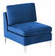 Rozšiřte sedací plochu pohovky tímto samostatným modulem pro jednu osobu. Díky tomu, že má stejné rozměry jako všechny kusy z kolekce, jej lze umístit libovolným způsobem a vytvořit tak sestavu, která se bude hodit do vašeho interiéru. Křeslo má tlusté polštáře s luxusním sametovým čalouněním. V kombinaci s lesklým stříbrným kovovým nohama, které mu dodávají čistý a moderní vzhled, se toto křeslo stane nádherným doplňkem místnosti.