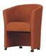 Moderní křeslo na kolečkách vhodné do kavárenských prostor, ale i domácností. Je čalouněné hnědou látkou mikrofáze.