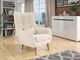 rám: dřevo + překližka + dřevotříska, sedák: T30 pěna (12 cm) + gumové pásy, opěradlo: T30 pěna (7,5 cm) + gumové pásy, nohy z bukového dřeva, čalouněné opěradlo pevně fixované, polštáře na zip v sadě, křeslo je volně stojící (záda jsou potažena látkou)