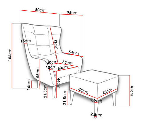 Vzhledově i kvalitou výborné křeslo, bohužel otoman neodpovídá barvě křesla a je inzerován.