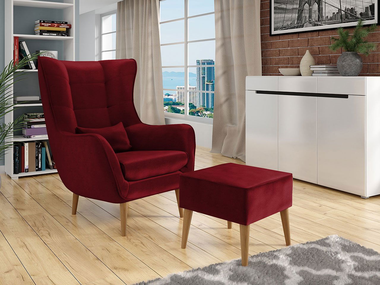 Křeslo se stále více stává nedílnou součástí moderního obývacího pokoje. Díky němu se pokoj stane útulným a získá koutek k relaxaci a odpočinku. Můžeme jej umístit k pohovce, ke krbu nebo knihovně. Jedním z návrhů v naší nabídce je křeslo Fendora s taburetkou. Charakteristickým znakem tohoto nábytku je zaoblená záď, která připomíná kuklu. Přední část křesla má ozdobné prošívání a pohodlné područky. Za zmínku stojí i technické aspekty křesla. Prvním z nich je použita pěna T30, která má tloušťku až 12 cm. Dalším aspektem je látka, kterou je křeslo potaženo. Má nejen vysokou odolnost proti tření a vyblednutí, ale je také příjemná a měkká na dotek. Kromě toho je součástí soupravy i taburetka, která zpříjemní lenošení na křesle a malý polštářek.