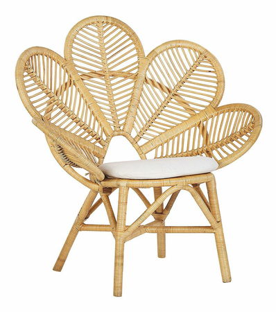 Univerzální křeslo s trendovým pavím opěradlem je skvělou volbou do jakéhokoli prostoru. Je vyrobeno z ratanu, díky čemuž je mimořádně lehké a lze jej snadno přenášet. Křeslo je doplněno sedacím polštářem v neutrální barvě, který zvyšuje komfort během sezení. Nejlépe vynikne v prostorách zařízených v rustikálním nebo boho stylu.