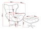 Křeslo je volně stojící v prostoru. Zadní strana je potáhnutá látkou. Taburetka je v ceně produktu.