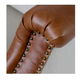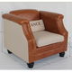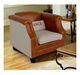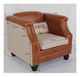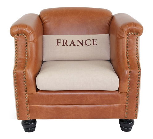 Kožené křeslo se hodí svým vzhledem do domácností, v nichž dominuje dřevo a rustikální styl nábytku. Područky křesla jsou vybíjeny. Polštářek křesla má potisk. Barevné provedení křesla je hnědá kůže, béžová barva a tmavohnědé masivní dřevo.