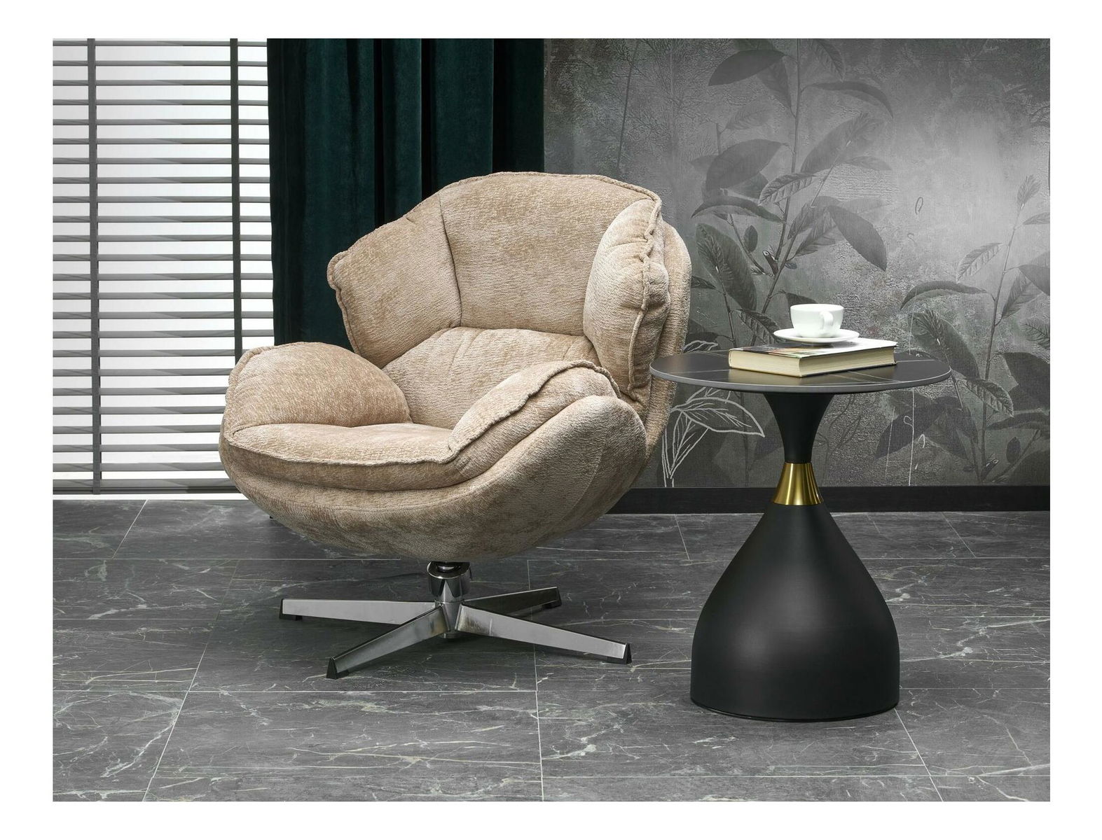 Toto otočné relaxační křeslo kombinuje eleganci s funkčností. Je opatřeno nožičkami z pochromované oceli, které zajišťují vysokou odolnost a stabilní základ. Potaženo je příjemnou sametovou tkaninou, což dodává křeslu luxusní vzhled a měkkost na dotek. S nosností do 120 kg a výškou sedáku 40 cm poskytuje křeslo komfortní sezení s dostatečnou oporou. Jeho otočná funkce umožňuje snadnou manipulaci a přizpůsobení směru sezení, což jej činí ideálním pro relaxační zóny v domácnosti nebo v kanceláři.